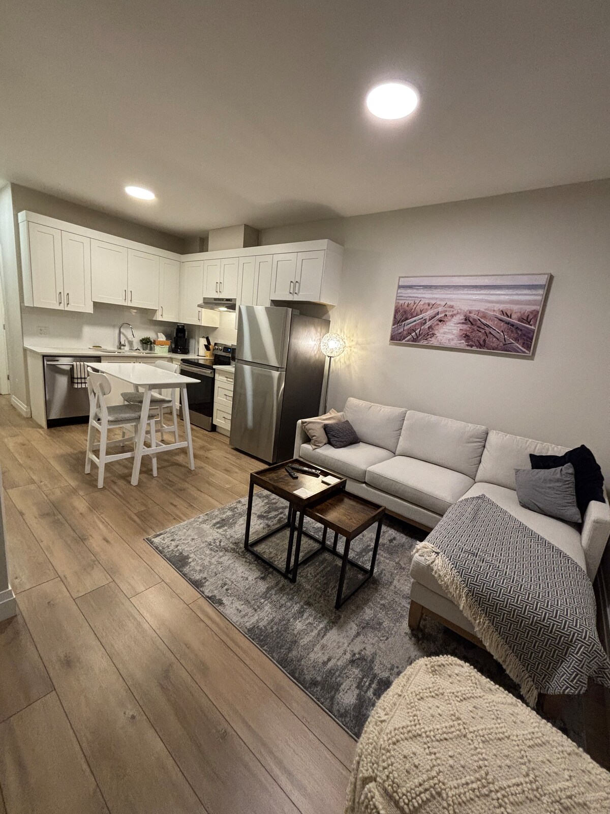 Suite ruang bawah tanah yang nyaman menawarkan dapur lengkap, ruang makan dan ruang tamu yang luas, serta kamar mandi modern bergaya retro. Tidur nyenyak di tempat tidur queen dengan seprai putih bersih dan bantal empuk. Nikmati wi - fi gratis dan tonton film Netflix favorit Anda di TV besar dengan perapian listrik yang hangat. Kopi pagi dan botol air gratis! Terletak di lingkungan yang tenang di mana Anda bisa berjalan di jalur terdekat. 20 menit berkendara dari/ke terminal Tsawwassen Ferry. 30 menit berkendara dari/ke bandara YVR.