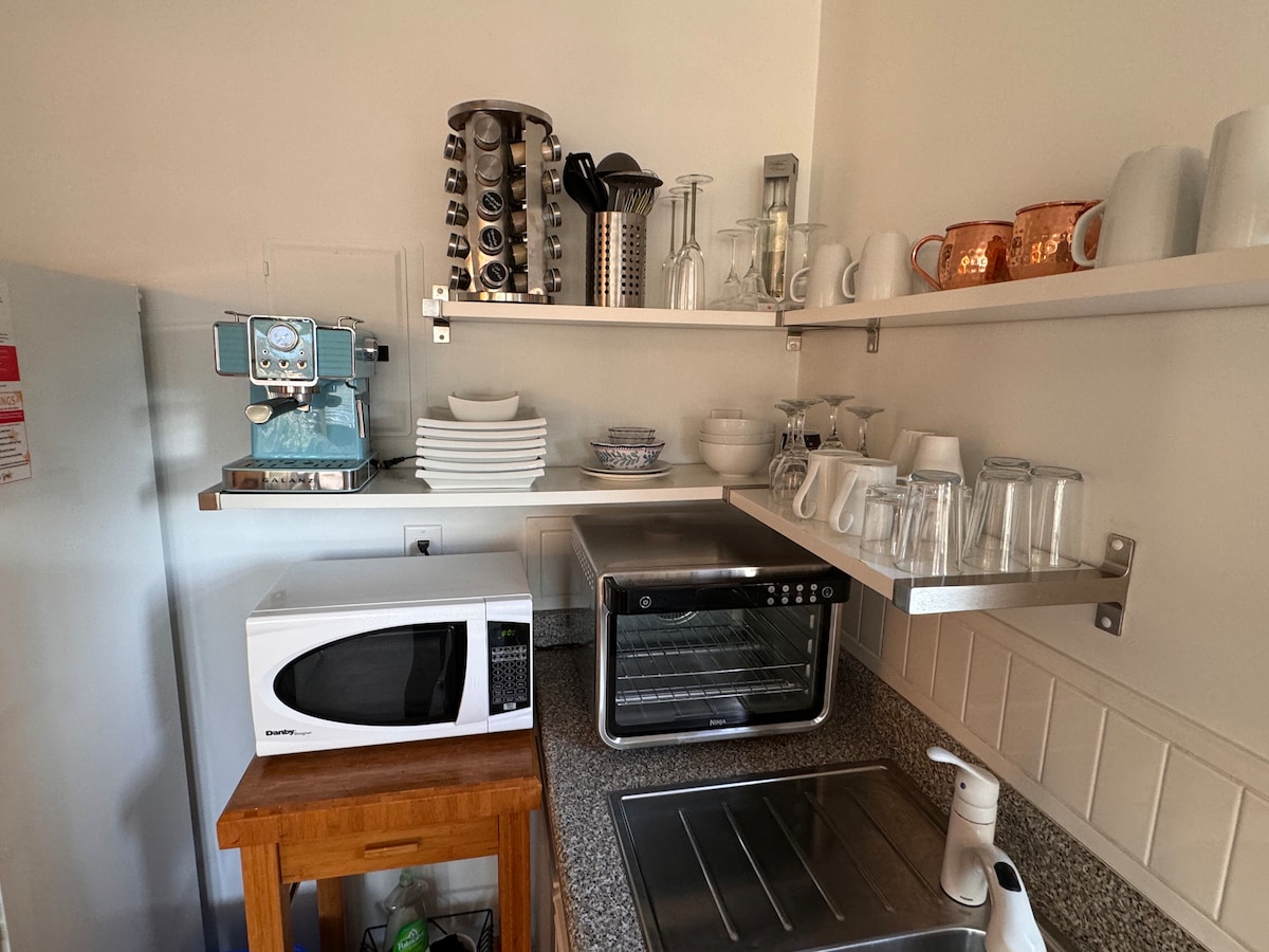 Tanpa BIAYA KEBERSIHAN! Layanan laundry dan kebersihan gratis untuk pemesanan mingguan. Manjakan diri dengan pengalaman bergaya di permata tersembunyi yang berlokasi di pusat kota ini. Perabotan mewah dan perlengkapan tempat tidur mewah Queen Size adalah bagian dari pengalaman Anda yang santai dan dimanjakan. Microwave, kulkas mini, dan mesin pembuat kopi terselip di lemari untuk mereka yang tidak ingin diingatkan harus memasak.
