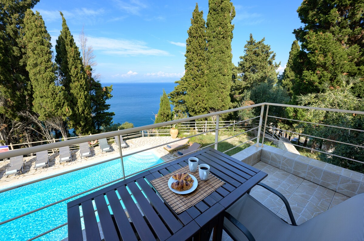 Villa Stelios di Loggos dengan pemandangan luar biasa