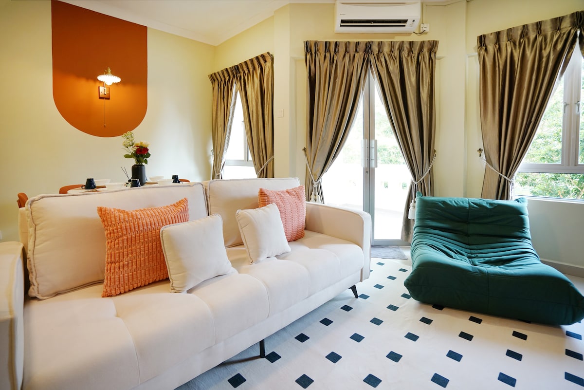 Tempat menginap yang bergaya dan luas, vila semi - terpisah dua lantai ini terletak tepat di seberang Lotus Hotel dan hanya 5 menit dari pantai, dengan pemandangan garis pantai. Vila ini dilengkapi dengan fasilitas seperti setrika, pengering rambut, ketel, microwave, kulkas, handuk, dan perlengkapan mandi. WiFi, YouTube & Netflix, meja mahjong, dan peralatan BBQ juga disediakan, namun tamu perlu membawa arang sendiri.