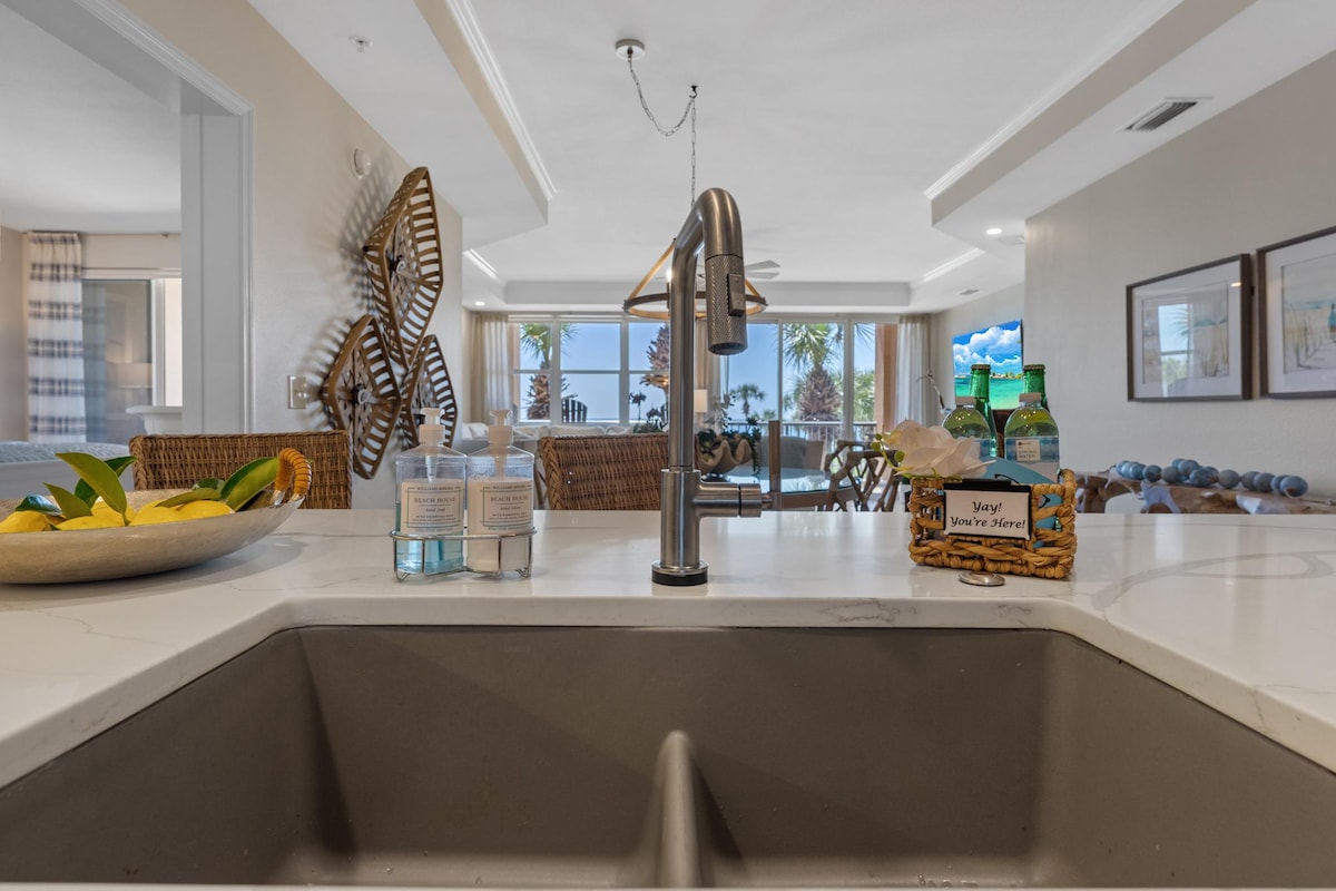 Ayo nikmati kondominium tepi laut ini. Anda akan menyukai tempat ini, yang terletak tepat di pantai, memiliki pemandangan Teluk yang indah. Kondominium 2KT/2Ba yang sangat bersih dan nyaman menampilkan tempat tidur Surgawi oleh Westin, sehingga Anda bisa tidur dengan nyenyak. Tidur malam yang nyenyak sama pentingnya dengan bangun tidur dengan pemandangan yang menawan untuk relaksasi yang optimal selama Anda menginap. Nikmati matahari terbit pagi Anda dengan secangkir kopi Starbucks atau Nespresso gratis dari dapur lengkap kami. Ayo temukan Emerald Coast.