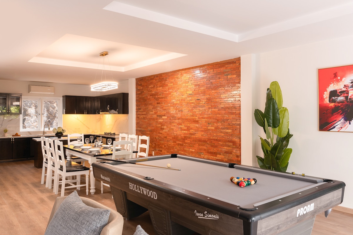 Temukan kesenangan tanpa akhir di vila lantai dasar kami yang menakjubkan, dengan halaman belakang yang menakjubkan menghadap sungai, cocok untuk pesta dan BBQ. Hanya berjarak 10 menit berjalan kaki, pasar malam Lai Thieu menawarkan hidangan Vietnam yang lezat. Dan hanya 30 menit dari Saigon, Anda akan mendapatkan akses mudah ke kehidupan malam dan arsitektur ikonik kota ini. Pesan sekarang untuk kenangan tak terlupakan!