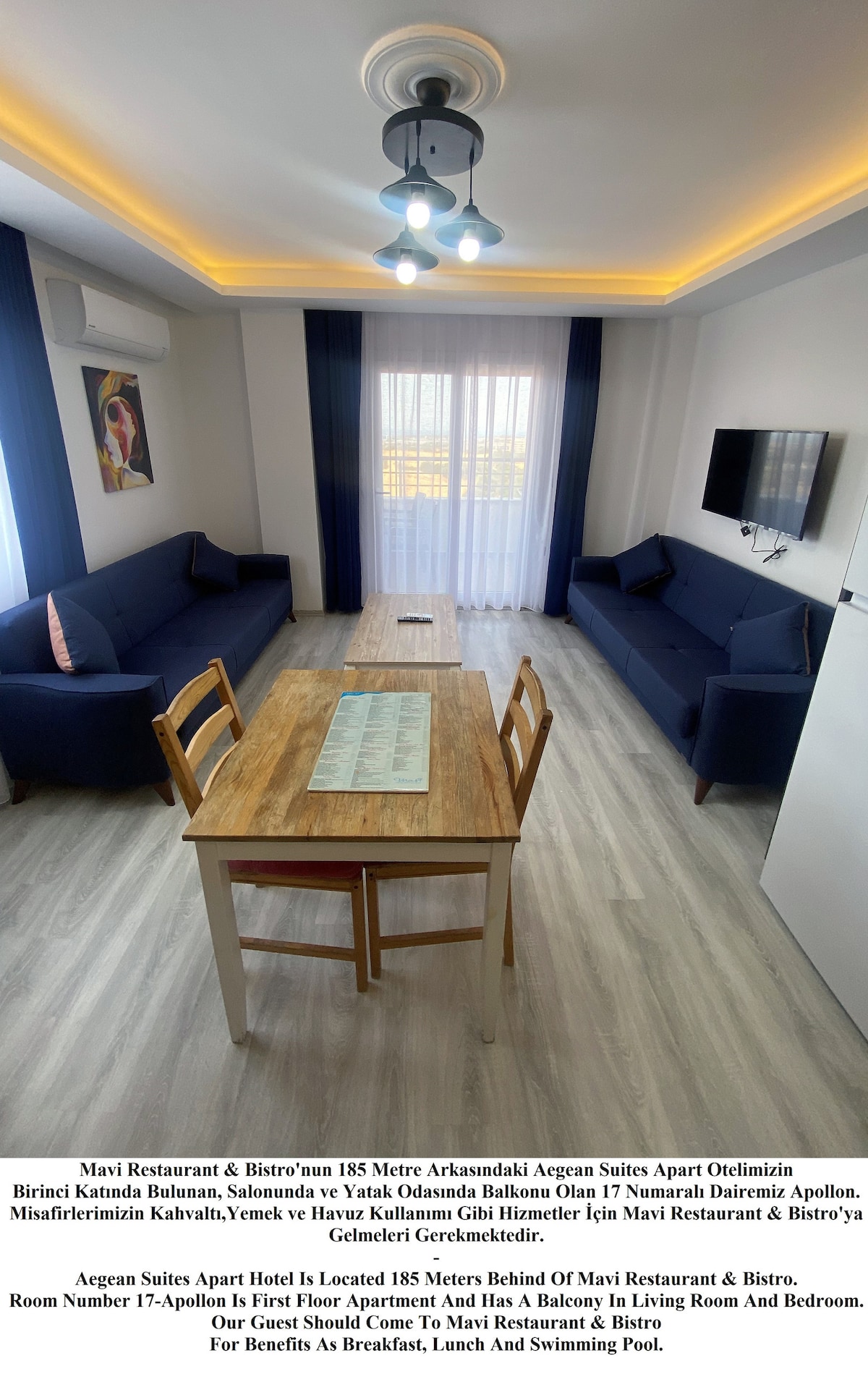 Aegean Suites Apart Hotel kami di belakang Blue Restaurant & Bistro 185 Meter Apartemen 17 kami dengan Balkon di Lounge dan Kamar Tidur di Lantai Satu adalah Apollo. Aegean Suites Apart Hotel Terletak 185 Meter Di Belakang Restoran & Bistro Mavi. Kamar Nomor 17 - Apollo Adalah Apartemen Lantai Satu Dan Memiliki Balkon di Ruang Tamu Dan Kamar Tidur.