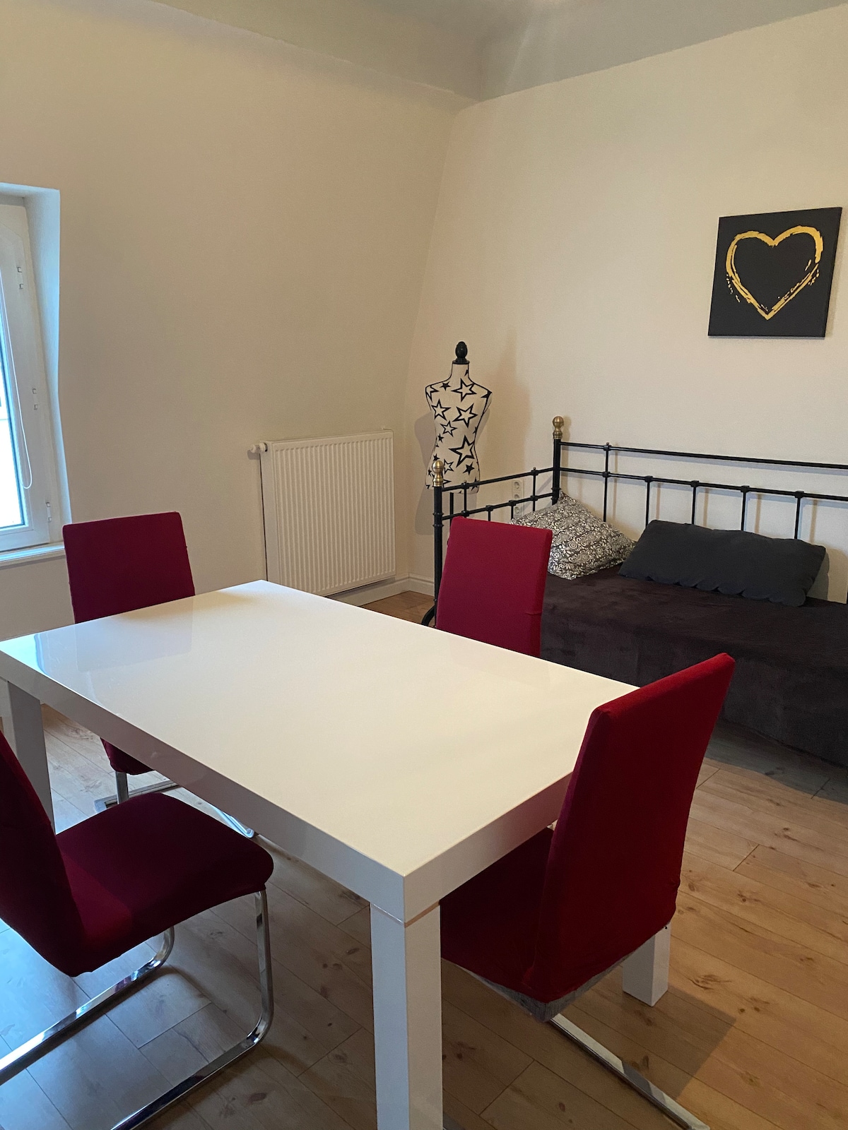Gemütliche Wohnung mit Schlafzimmer (Doppelbett), Bad und Wohnzimmer mit Schlafsofa. Voll ausgestattete Küche inkl. Kaffeemaschine, Herd und Kühlschrank. WLAN, TV und Arbeitsplatz sind vorhanden. Kostenlose Parkplätze vor der Tür. Nur wenige Minuten bis zur Innenstadt, gute Anbindung an ÖPNV und Autobahn. Perfekt für Paare, Alleinreisende oder Geschäftsreisende, die Komfort und Ruhe schätzen. Einkaufsmöglichkeiten und Restaurants sind in der Nähe.