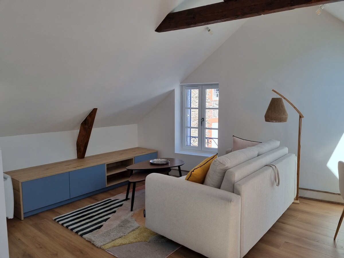 Di pusat Dinan, biarkan diri Anda terbawa oleh keanggunan Roma Kuno. Bersantai di suite mewah dengan balneo pribadi🛁. Nikmati kenyamanan tempat tidur berukuran queen dengan 🛏️seprai hotel, dapur lengkap, TV yang terhubung dengan Netflix, WiFi fiber, dan teras yang akrab. Sangat dekat dengan Clock Tower dan Jerzual yang indah. Dekat tempat parkir, restoran, dan toko. Semuanya menyatu untuk liburan romantis yang tak terlupakan❤️.