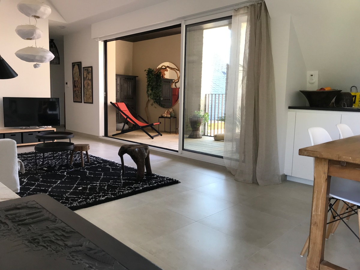 Apartemen dupleks berukuran 65 meter persegi yang menawan di pusat Dinard, 1 menit dari pantai l 'Ecluse dan dermaga bintang-bintang untuk St-Malo, dan 5 menit dari pusat kota. Seprai (seprai dan handuk) disediakan, dan tempat tidur akan disediakan saat kedatangan Anda. Perhatian: kamar tidur dan dapur memiliki langit-langit yang cukup rendah, apartemen ini tidak direkomendasikan untuk orang yang tingginya lebih dari 1m85.
