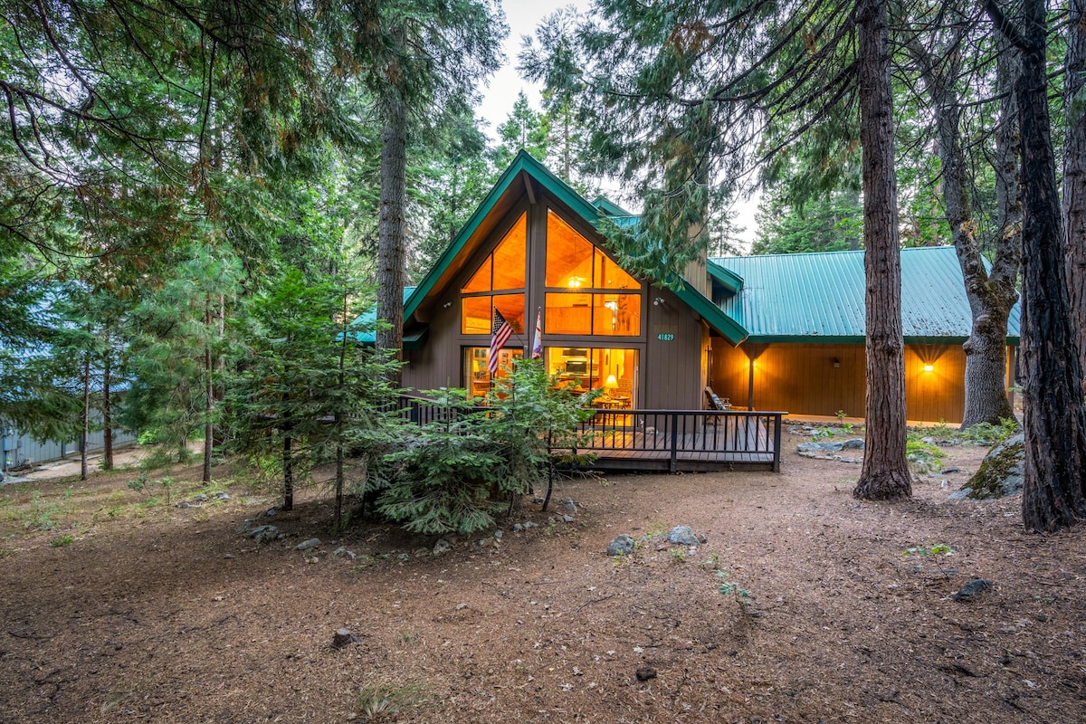 No car needed...Walk to EVERYTHING Shaver Lake has to offer! 1 MINUTE walk to Restaurants, Coffee, Ice Cream, Grocery stores, Snow Parks, Bars & Pubs! 12minute walk 2 the LAKE! Our family-friendly cozy cabin has everything if you choose to stay in. WIFI -SMART TVs +DVD -Outdoor BBQ -FRONT PATIO w/ Rocking Chairs & Picnic Area- 2nd Story BACK PATIO - SIT N' SIP Outdoor Firepit Lounge-DARTS -FIREPLACE -SNOW SLEDS -Complete Kitchen (Breakfast+ Starbucks Included) -Washer/Dryer+++ www~DropMyPin~com