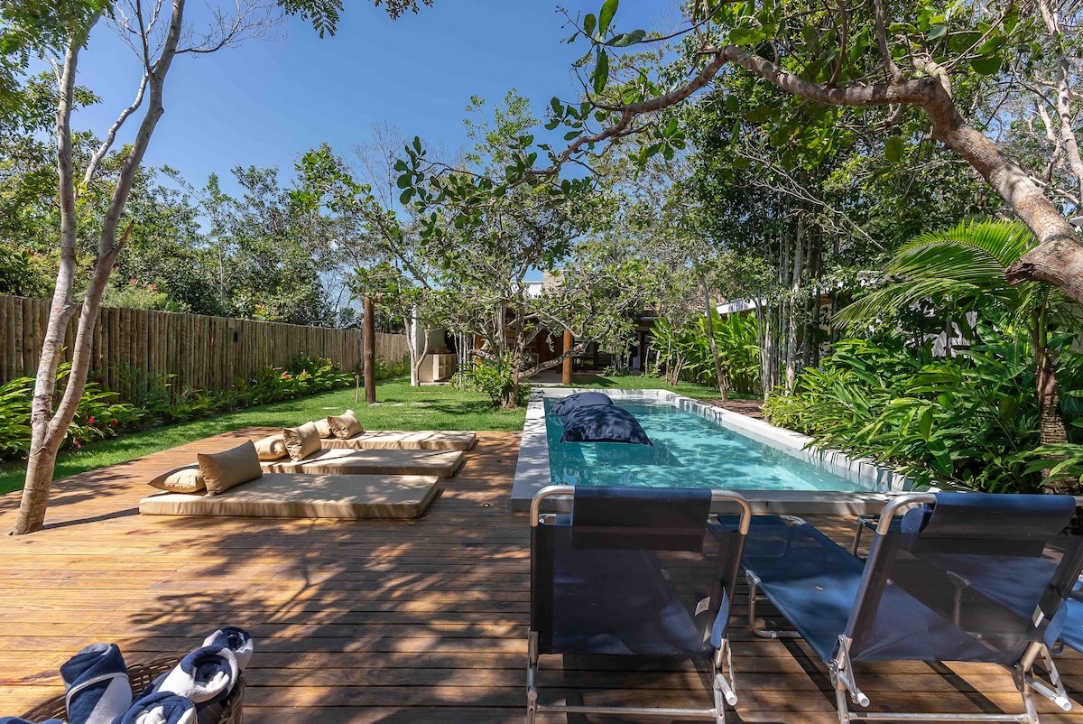 Rumah kecil kami dirancang dengan penuh kasih sayang untuk menghadirkan kenyamanan maksimal bagi tamu kami, mulai dari jacuzzi pribadi super super yang luar biasa di dek suite Anda, seprai 400 kawat hingga internet serat optik 200 Mb yang luar biasa bagi mereka yang berada di kantor rumah. Villa kami memiliki 2.200 meter persegi dengan pepohonan indah yang memberikan tontonan terpisah. Kami memiliki kunjungan harian ke 3 spesies monyet, beberapa burung, dan bahkan hewan malas. :) Kami berjarak 2 km dari Square dan 3 km ke pantai + pantai terdekat + di dekatnya