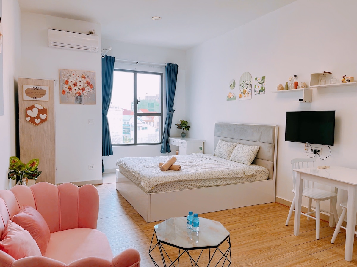 Apartemen Studio yang tenang dengan balkon di Lavida Plus, Distrik 7 - dekat Phu My Hung, RMIT, SECC, Crescent Mall, Korean Town. Sangat cocok untuk pasangan, wisatawan solo, atau tamu bisnis yang mencari tempat yang bersih, nyaman, dan berfasilitas lengkap. Menampilkan desain Skandinavia minimalis, studio ini menawarkan masa inap yang tenang dan nyaman & semua fasilitas dasar untuk masa inap jangka pendek & panjang. Kami menawarkan layanan kebersihan gratis di tengah masa inap untuk pemesanan selama lebih dari 7 malam.