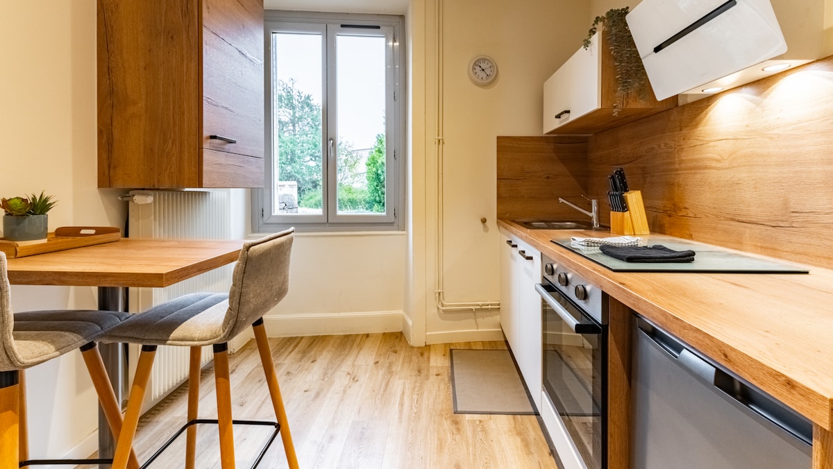 Selamat datang di Apartemen Louis! (Rue Pasteur) Terletak ideal di pusat kota tua, dekat dengan semua toko, tempat parkir umum berjarak 100 m, kemungkinan berjalan kaki yang luas: jalan Jules Grevy, jalur sepeda, kunjungan budaya... Apartemen bergaya industri dengan dapur lengkap, ruang tamu dengan sofa bed, kamar mandi dengan shower dan toilet, kamar tidur dengan tempat tidur double. Tempat tidur bayi juga tersedia dan 2 sepeda dewasa tersedia.