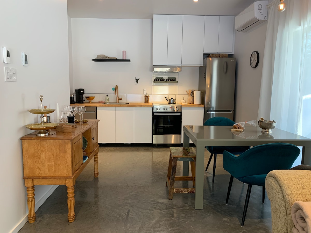 Kabin modern baru yang merupakan pelarian terbaik dari kota, di mana alam berada di jejak Anda. Tempat di mana Anda bisa bersantai untuk mengatur suasana hati Anda. Nikmati ruang tamu yang nyaman, nikmati malam film di dekat Smart TV 85''. ٍBersantai di kamar tidur yang nyaman dengan desain modern kamar mandi dalam. Kamar mandi adalah tata letak terbuka tanpa pintu, tetapi shower dan toilet tidak terlihat untuk privasi Anda. Memasak makanan Anda menyenangkan di dapur yang lengkap. Kami juga memiliki pengisi daya EV!
