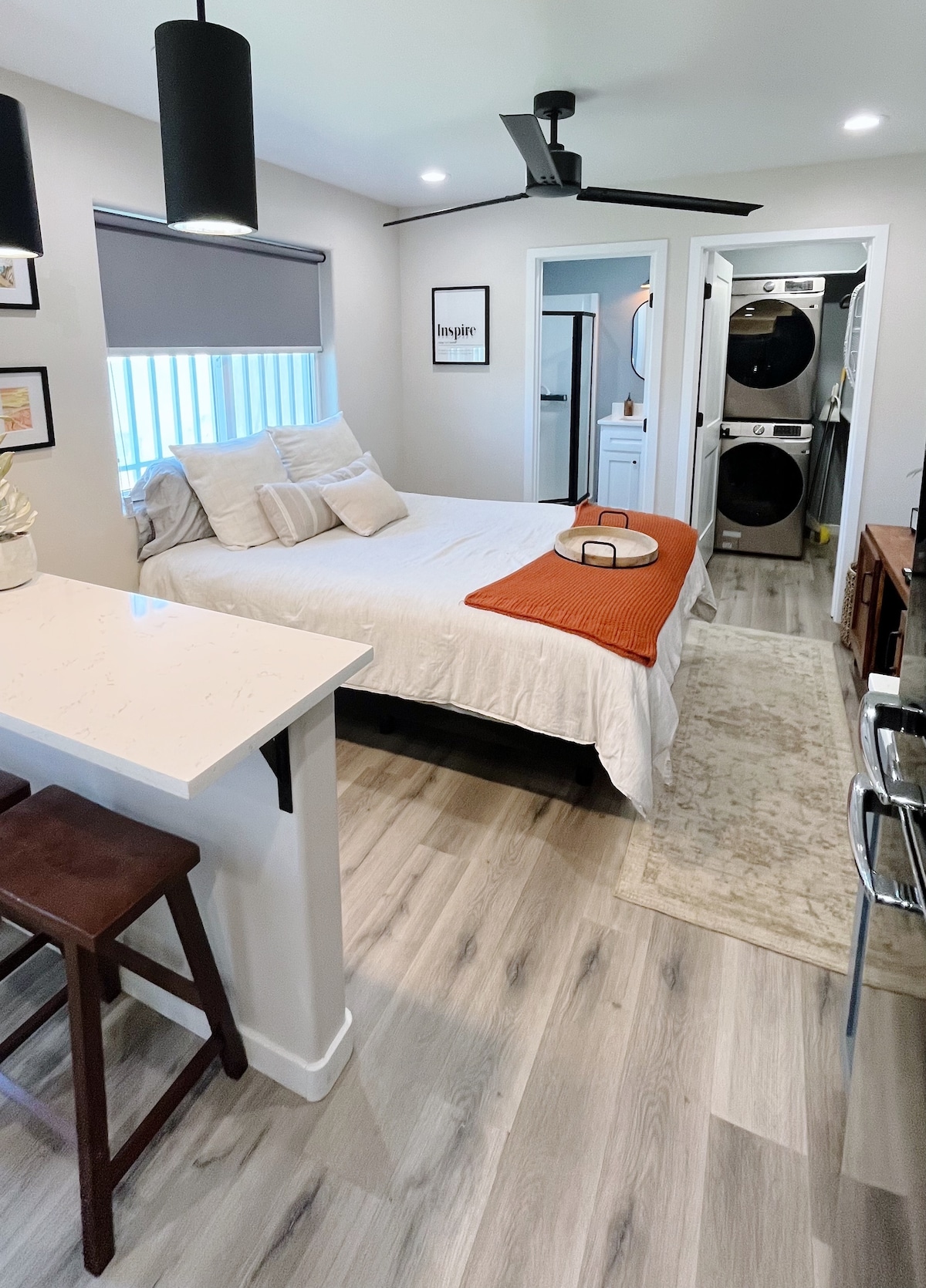 Rumah tamu yang cerah dan terpisah sepenuhnya di bagian belakang rumah dengan pintu masuk terpisah, ideal untuk dua orang. Bersih, modern, dan dilengkapi dengan penuh perhatian, tempat ini menawarkan privasi dan kenyamanan dengan mesin cuci dan pengering dalam unit, AC, dan dapur kecil. Akses mudah ke fasilitas dasar setempatโ5 menit ke Rumah Sakit Onvida dan Sprouts, dan hanya beberapa menit dari kedai kopi, restoran, dan toko-toko di lingkungan tinggal.