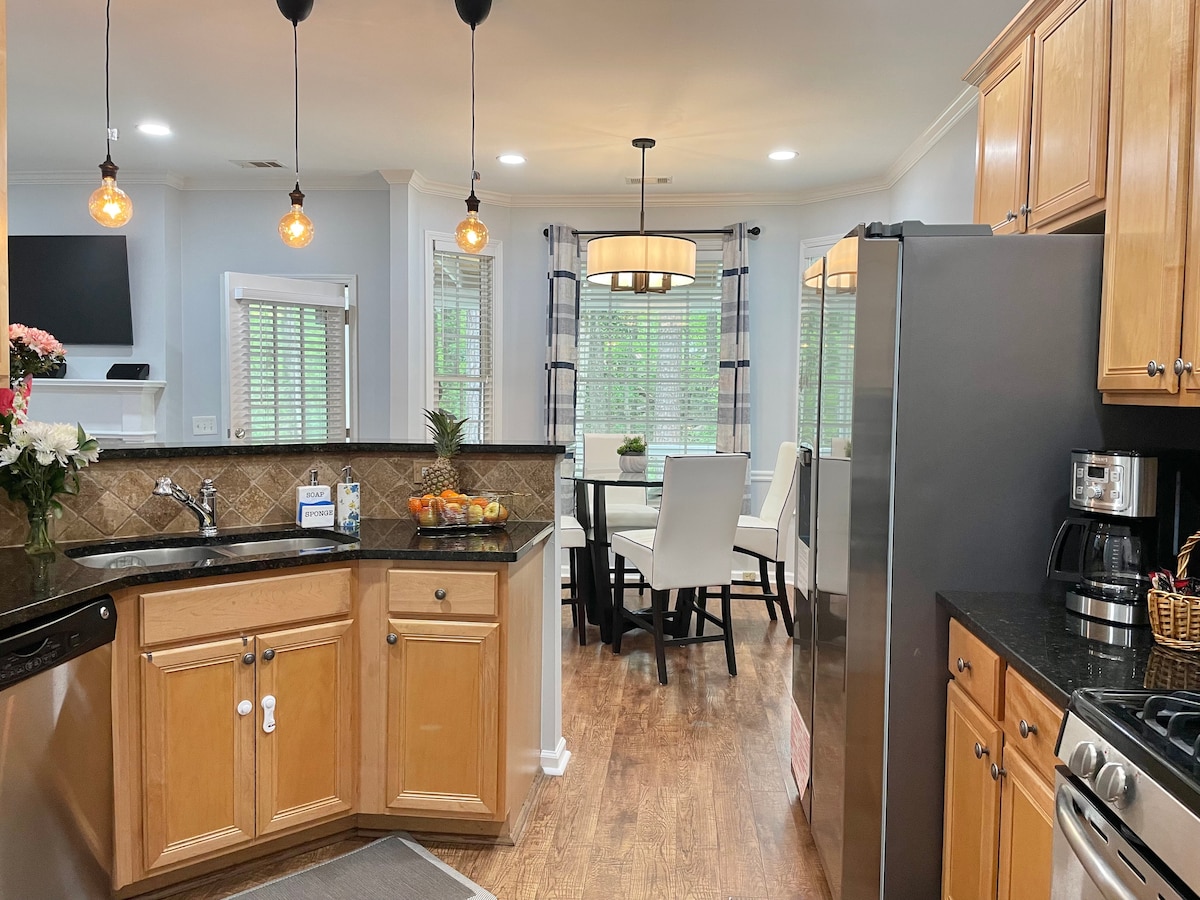 Terletak di lingkungan yang tenang dan nyaman untuk berbelanja (Starbucks, Chipotle, Pappadeaux, dll.), Infinite Energy Arena, dan berjarak beberapa menit dari pusat kota Atlanta, 3 tempat tidur, 2 kamar mandi Rumah peternakan yang didekorasi dengan indah dan baru direnovasi ini bisa menampung 6 orang dan hingga 9 orang dengan tempat tidur lipat/tiup. Menampilkan denah lantai terbuka, langit - langit berkubah, bar sarapan, meja makan untuk 6 orang, area kerja, dan dek luar ruangan yang santai, rumah ini sangat cocok untuk keluarga, perjalanan anak perempuan, atau sekadar liburan akhir pekan singkat!