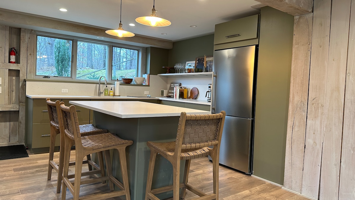 Nikmati pondok mewah post - and - beam dua lantai yang telah direnovasi ini di luar Kent, CT. Hanya 9 menit dari pusat kota Kent dan dekat dengan yang terbaik di Litchfield County, pondok kami terletak di properti 3,5 hektar yang tenang yang mendukung ke hutan yang dilindungi. Kami dengan susah payah membawa ruang pedesaan ke masa kini, dengan dapur kecil baru; kamar mandi dengan pancuran besar seperti spa; HVAC baru; dan akomodasi seperti hotel. Dekat dengan Kent School, Canterbury, dan sangat cocok untuk liburan romantis.