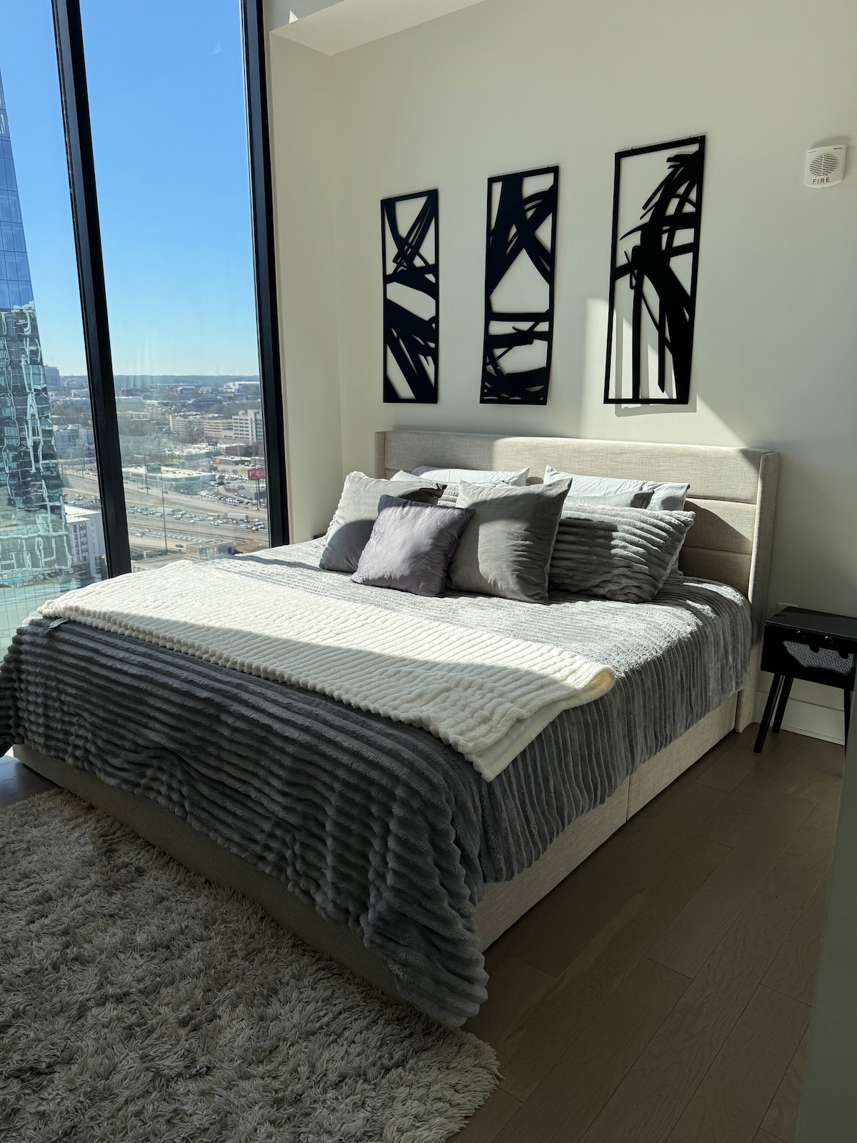 Selamat datang di loteng yang penuh karakter di Castleberry Hill, yang dirancang untuk kenyamanan, fleksibilitas, dan akses pusat kota yang mudah. - 6 tempat tidur | 2 kamar tidur | 3 tempat tidur | 1,5 kamar mandi - Tata letak loteng dengan kamar tidur kedua semi - pribadi - Dapur dengan kompor gas & pulau Jenn-Air - Mesin cuci & pengering dalam unit - Akses lift + 1 tempat parkir tertutup - Lounge atap & pemanggang BBQ bersama