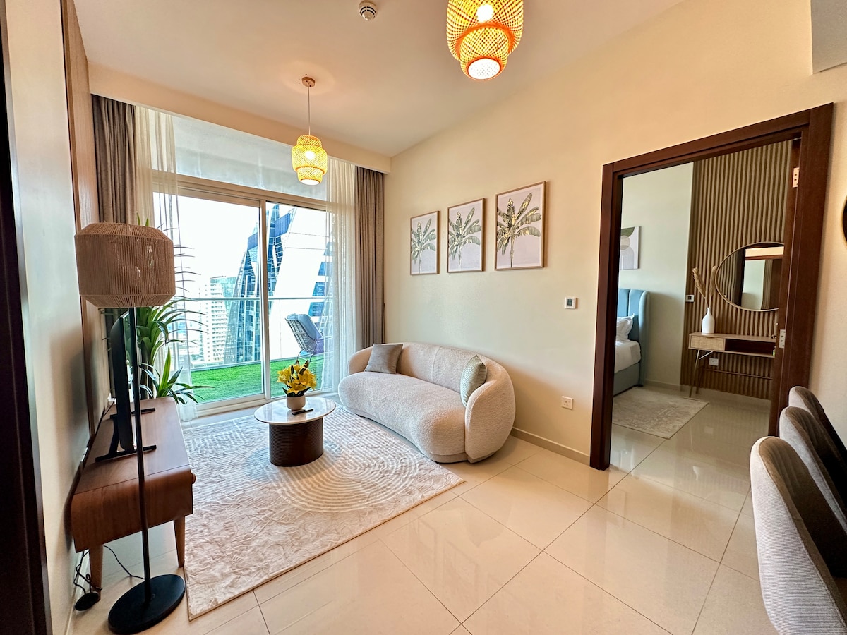 Sobha Waves Grande Big 1BR apt pemandangan Burj Khalifa!