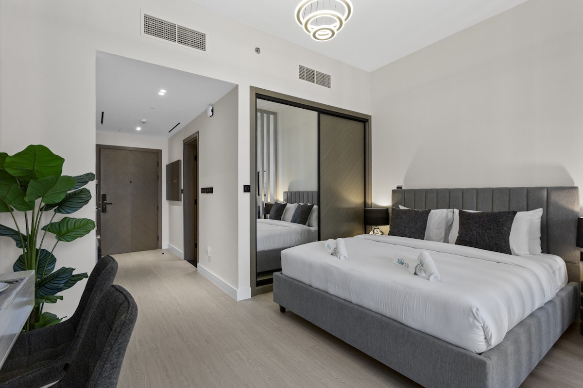 Rasakan kenyamanan dan kemudahan di apartemen 1 kamar tidur kami yang bergaya, hanya berjarak 15 menit berjalan kaki dari Dubai Mall dan Burj Khalifa yang ikonis. Tempat peristirahatan ini dirancang untuk pelawat wisata dan bisnis, menampilkan semua perlengkapan dasar untuk menginap dengan sangat nyaman. Nikmati ruang lengkap dengan tempat tidur yang nyaman, fasilitas modern, dan pengaturan yang cocok untuk bekerja dengan WiFi yang cepat dan andal. Baik Anda berada di sini untuk menjelajah atau bekerja dari jarak jauh, studio kami menawarkan perpaduan sempurna antara lokasi, kenyamanan, dan fungsionalitas.