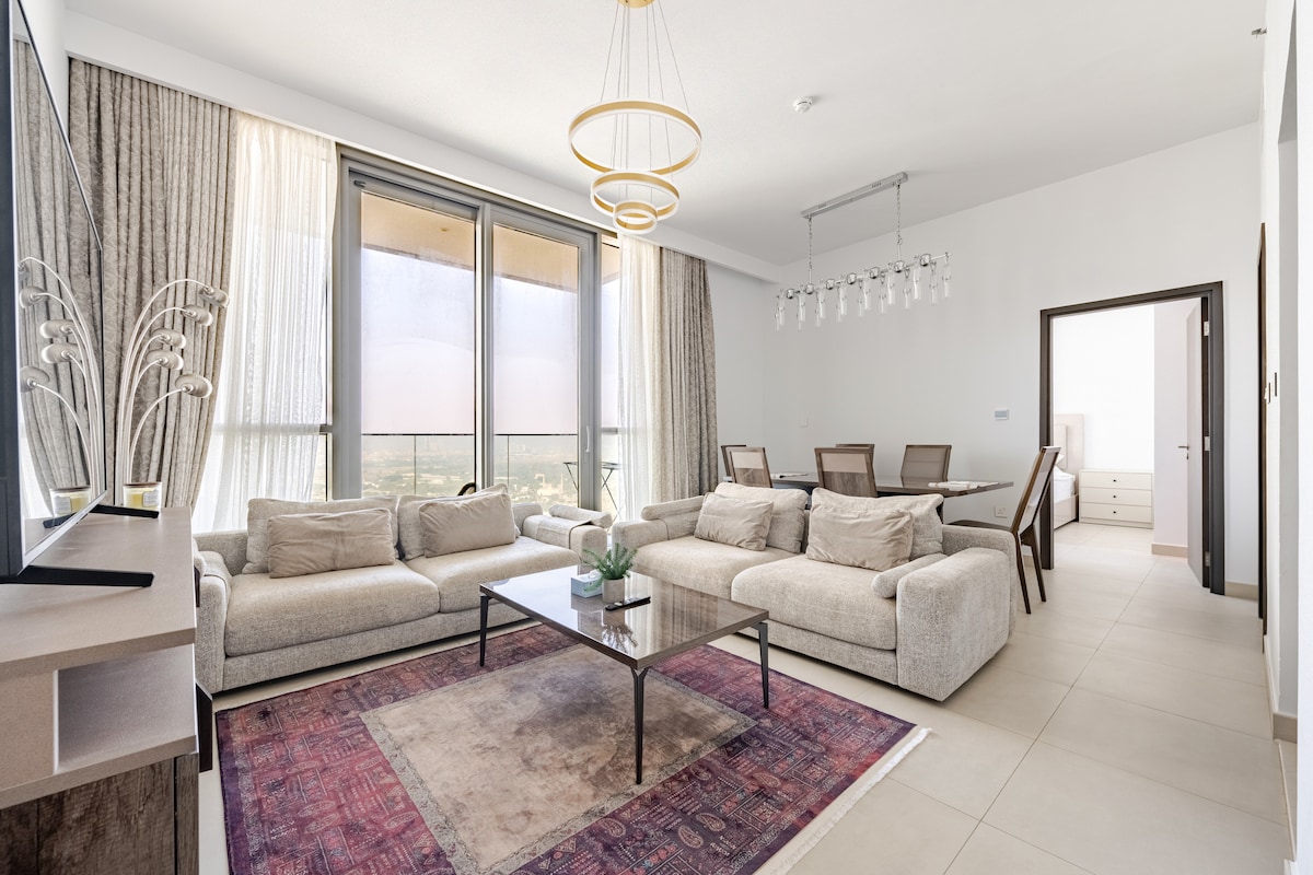 Tempat Dubai bertemu Yunani - desain interior unik yang terinspirasi Santorini ini merupakan perpaduan sejati antara pesona Mediterania dan kemewahan modern. Terletak di jantung Dubai Downtown, hanya berjalan kaki sebentar, Anda akan berada di Dubai Mall, serta Burj Khalifa Fountain Show yang memukau. Jendela besar dari lantai hingga langit - langit membingkai pemandangan indah cakrawala Dubai yang ikonis, dengan pemandangan penuh Burj Khalifa. Saksikan cahaya Burj Khalifa setiap malam di balkon Anda yang nyaman.