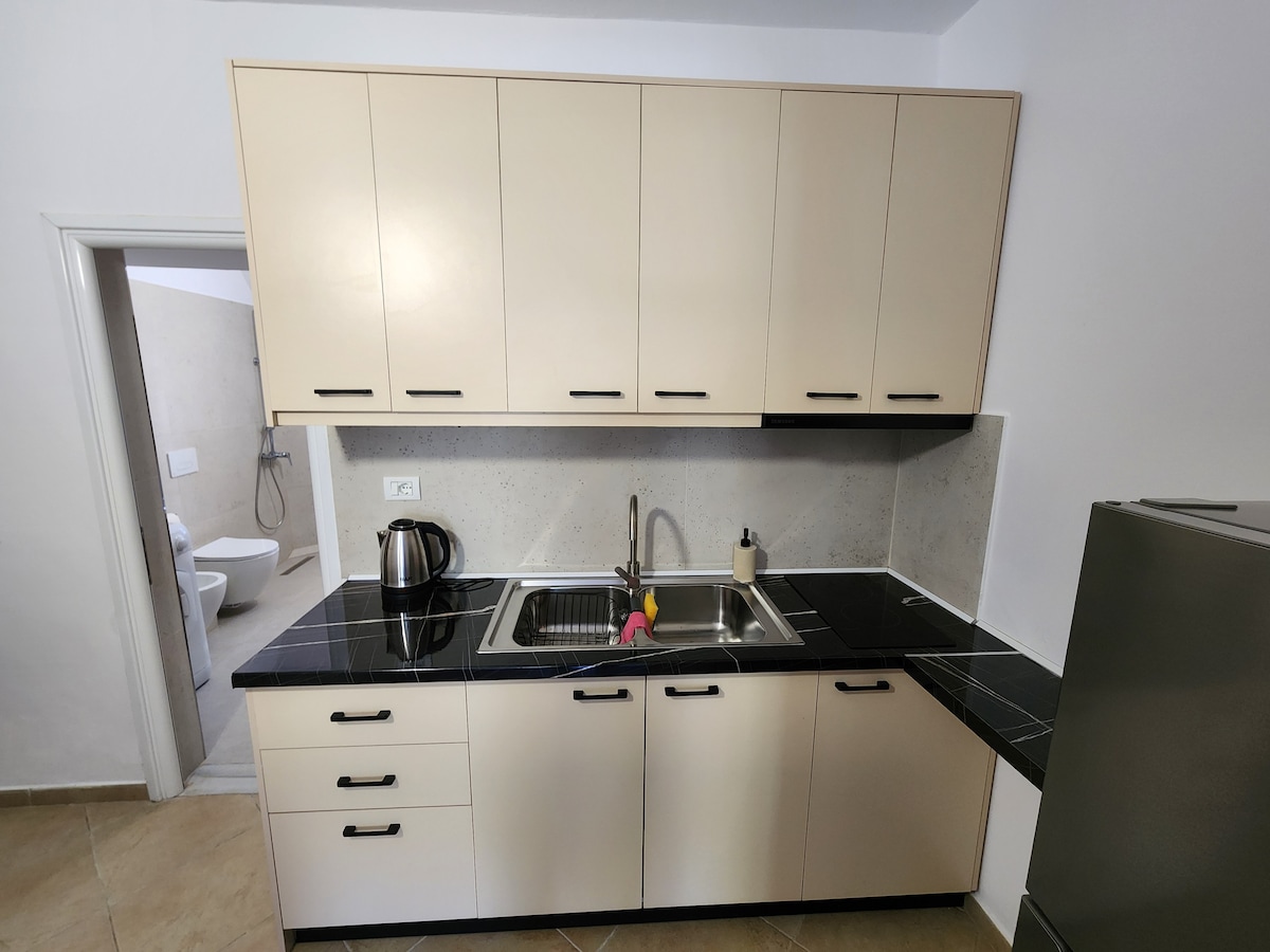 Ciptakan pengalaman dan kenangan di apartemen kami yang berlokasi di Berat, di kaki bukit kastil. Apartemen kami adalah ruang yang nyaman cocok untuk siapa saja yang ingin menikmati tamasya kota berusia 2400 tahun Berat. 57 meter persegi menawarkan semua yang Anda butuhkan mulai dari kamar tidur hingga ruang tamu, dapur, kamar mandi dan taman. Apartemen ini memiliki semua fasilitas yang diperlukan Wi - Fi gratis, dapur, AC, smart TV, CCTV, Parkir gratis, dll. Tempat ini juga memiliki desain interior yang sangat indah untuk membuat Anda merasa seperti rumah.