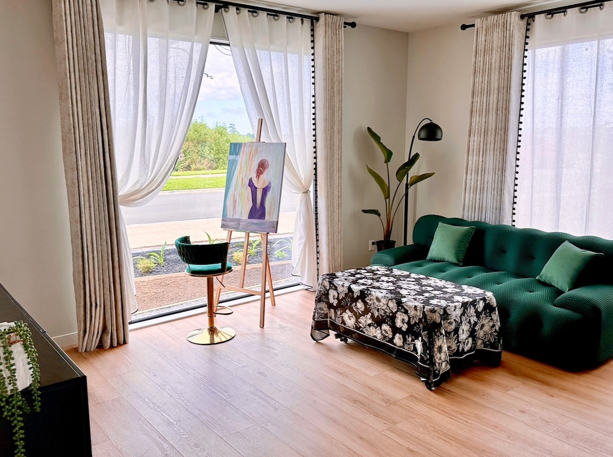 Ruang modern yang nyaman. Kamar studio besar yang berisi tempat tidur Queen, meja & kursi dan dapur kecil dengan kulkas, pemanggang roti, microwave, ketel, teh, kopi, susu, dan camilan ringan. Studio terhubung ke rumah utama, memiliki pintu masuknya sendiri dan area luar ruangan pribadi. Parkir di luar jalan. Semi - pedesaan dengan akses mudah ke jalan raya Nth & Sth. Sekitar 2,5 km ke desa.. 25 km dari Bandara. Tidak ada angkutan umum sehingga Anda membutuhkan kendaraan. Jika diperlukan, Anda bisa menyediakan satu kasur angin dan tempat tidur bayi .