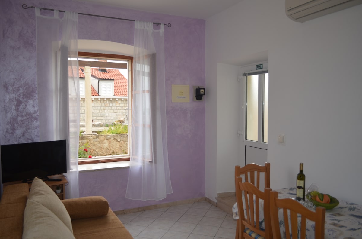 Apartemen terletak di rumah keluarga tua, di tepi pantai teluk Zaton yang indah. Tempat ini memiliki kamar tidur, kamar mandi, dan dapur kecil. Pemandangan di taman mediterrenean dengan pohon jeruk dan banyak tanaman lainnya yang berbeda. Hanya 20 m ke laut membuat apartemen ini pilihan yang cocok untuk liburan santai, dan pada waktu yang sama hanya 10 km dari pusat Dubrovnik dengan pemandangan intersting. Selain itu ,ada banyak kemungkinan untuk liburan aktif,seperti mendayung,bersepeda, berlayar, atau menemukan sejarah .