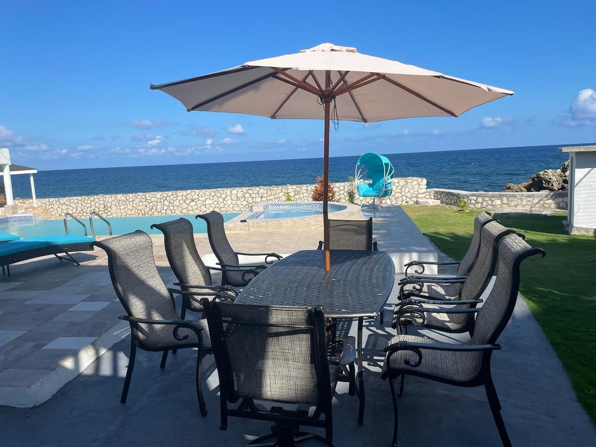 Terletak tepat di laut dan ruangan untuk 7 orang -- bawa keluarga! Villa bergaya dengan tiga kamar tidur ditambah ruang tidur dengan empat kamar mandi lengkap menawarkan pesona Karibia dan kepekaan modern. Dapur lengkap, area tamu yang sangat nyaman menghadap area makan/bar dan lounge yang luas dengan pemandangan laut yang tak berujung. Termasuk: Starlink Wifi, SmartTV 65" dan a/c di seluruh ruangan; pembantu rumah tangga/koki pribadi Anda ada di sana untuk mengurus segala kebutuhan Anda. Nikmati liburan Jamaika yang unik dan santai hari ini!