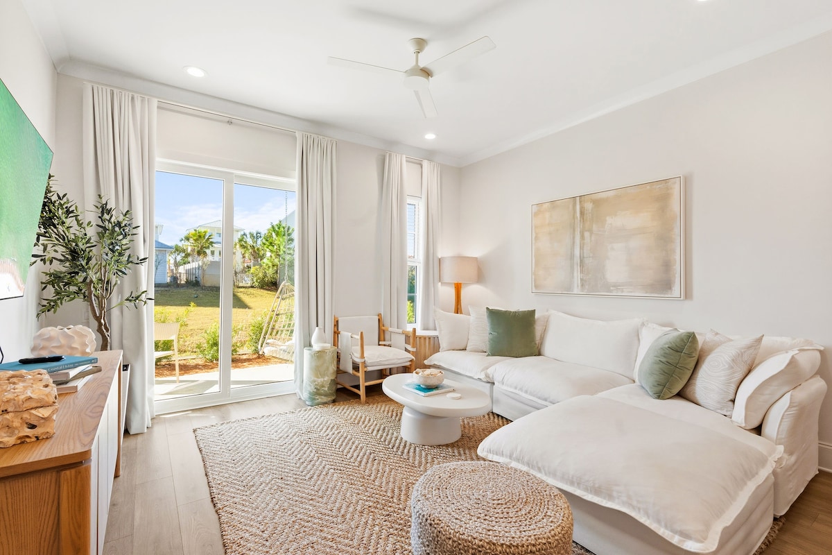 Escape to this serene 3-bedroom, 4-bathroom retreat in a quiet private community in Santa Rosa Beach. Perfect for up to 8 guests, this home offers comfort, style, and convenience. Enjoy the open-concept living space, fully equipped kitchen, and dedicated office area. Relax on the balcony, explore nearby beaches and golf courses, or take advantage of community amenities, including a pool. A golf cart is provided for easy access to local attractions. Your peaceful getaway awaits!
