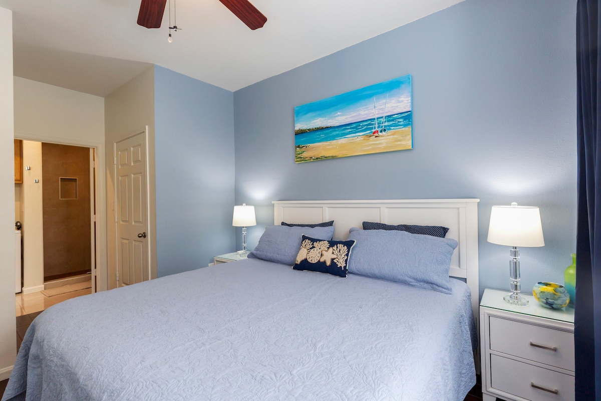 Kondominium Indah beberapa menit dari pantai & tempat tidur King