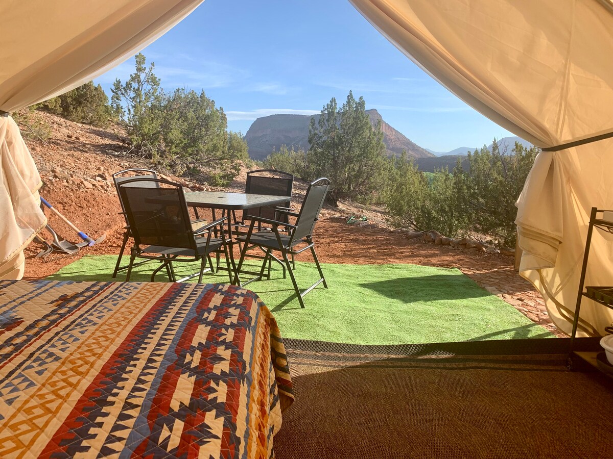 Terselip di dalam kebun yang tenang, dua tenda bergaya safari yang luas dengan tempat tidur king mewah, seprai lembut, dan ruang lounge yang menarik. Langkah keluar untuk melihat pemandangan Canyon of the Ancients yang menakjubkan—latar belakang yang mengubah momen menjadi kartu pos. Hari-hari di sini dihabiskan untuk mendaki jalur berpemandangan indah dengan pemandangan panorama Mesa Verde. Malam hari adalah matahari terbenam, cahaya bintang, dan ketenangan total. Eksklusif untuk Anda: Kami menerima satu grup pada satu waktu, sehingga Anda dapat menikmati seluruh area perkemahan untuk bersantai, menjelajah, dan kembali terhubung.