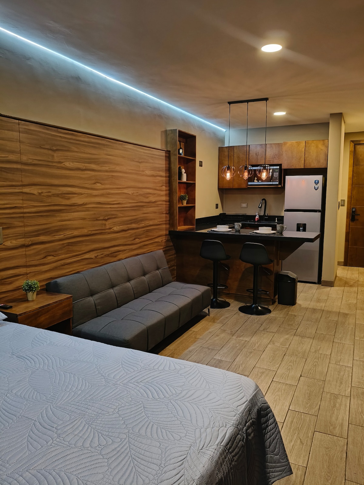 Nikmati loteng mini yang modern dan nyaman yang terletak tepat di sebelah Gereja Santa Ana yang ikonis, di pusat Pusat Bersejarah Durango. Sangat cocok untuk pasangan, pelawat bisnis, atau siapa saja yang mencari penginapan yang bergaya, nyaman, dan aman di area terbaik kota. Anda bisa bersantai sejak saat kedatangan, dengan restoran, kafe, toko, museum, dan tempat wisata utama yang hanya berjarak beberapa langkah.