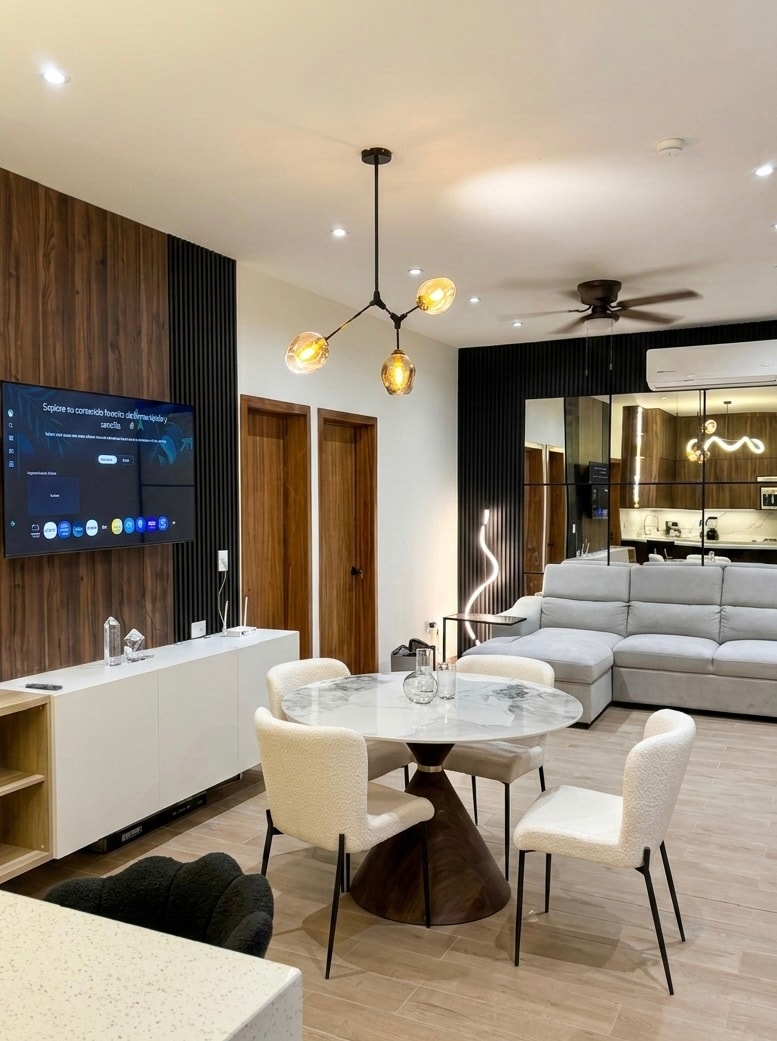 Menginap di apartemen cantik dengan finishing mewah di lokasi luar biasa dengan semua fasilitas yang Anda cari untuk menikmati masa inap Anda. Kami memiliki: Kamar tidur besar dengan tempat tidur king size dan TV pintar. Dua kamar mandi yang luas dengan finishing mewah Dapur dengan perlengkapan memadai Ruang kerja dan kantor di rumah Layar cerdas besar di ruang tamu Gaya modern unik di Durango dan segala sesuatu di lokasi yang sangat baik hanya beberapa menit dari pusat bersejarah dan Plaza Paseo Durango. Sampai bertemu!