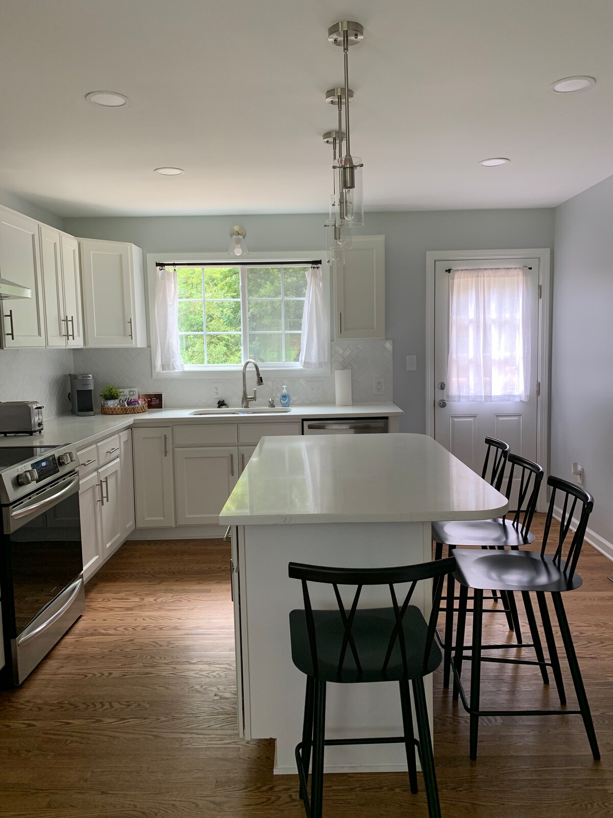Terletak di pusat dekat Bandara RDU, RTP, Angus Barn, pusat kota, restoran, dan pusat perbelanjaan. Ramah anjing dengan halaman belakang berpagar! Lvl -2 48amp EV Charger, Handuk/seprai gratis dan bersih tersedia atas permintaan. Masuk ke layanan streaming favorit Anda di 4 Smart TV. 2 area meja dan WiFi YANG LUAR BIASA! BBQ dan meja piknik dengan payung di teras belakang. Parkir di lokasi: 1 mobil di garasi, 2 -3 di jalan masuk. Saat ini menerima pemesanan 1 malam. Pelajari Ulasan kami - Lihat pendapat Tamu.