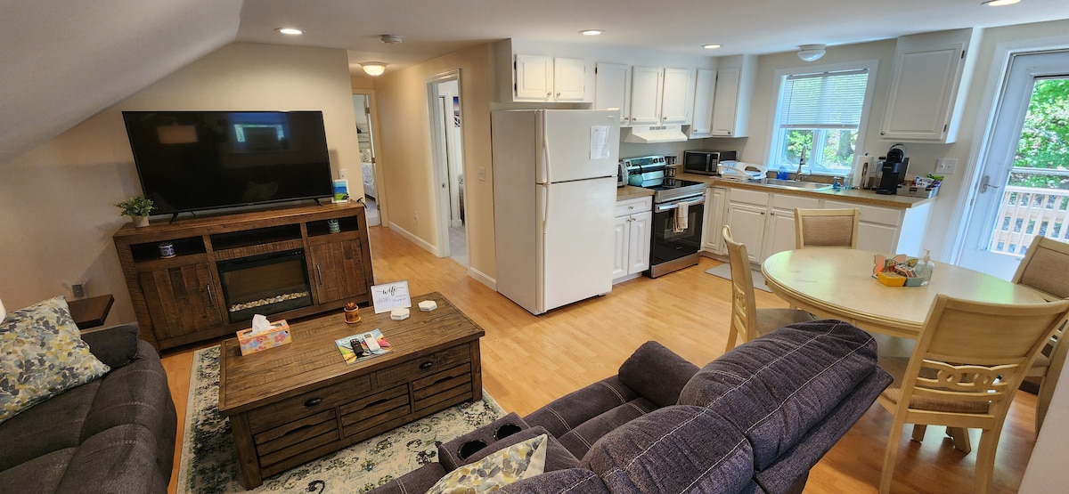 Apartemen modern tingkat taman yang bergaya ini berlokasi di Kittery dan menyediakan rekomendasi lokal dari tuan rumah yang tinggal di unit atas. Dapur dilengkapi dengan semua kebutuhan memasak dan kopi Anda, dan mencakup kulkas bawah meja, freezer bawah meja, dan microwave. Rumah ini berjarak kurang dari satu mil ke pusat kota Kittery dan gerbang galangan kapal, dan kurang dari dua mil ke Portsmouth. (Semua sangat mudah dijangkau dengan berjalan kaki dengan trotoar) Nomor Lisensi Sewa Jangka Pendek Kittery: ABNB-25-43