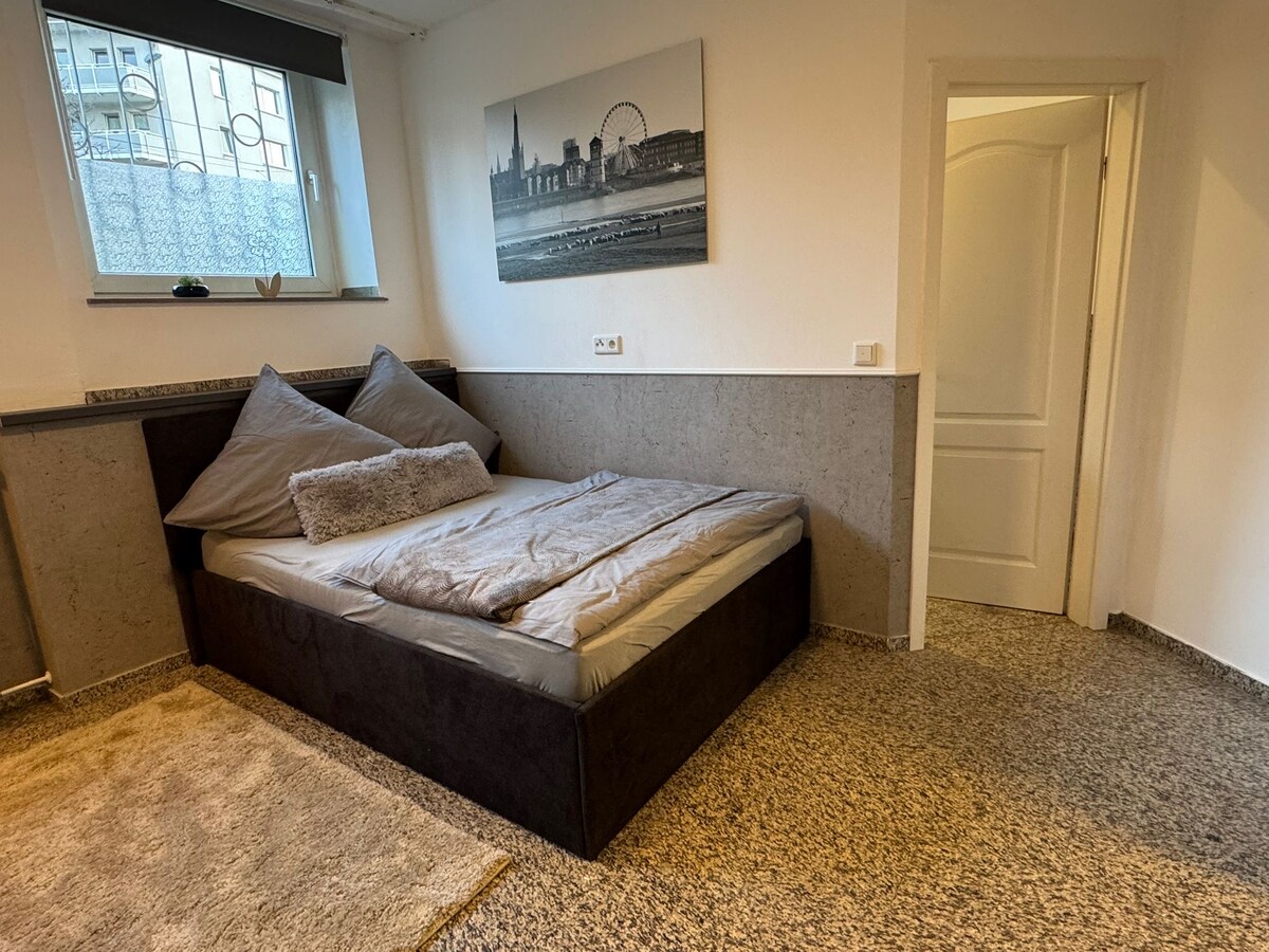 Apartemen ini berada di pusat kota Düsseldorf - Friedrichstadt. Apartemen ini terdiri dari ruang makan dan ruang tamu dengan tempat tidur sofa (dengan kasur terus menerus) serta kamar tidur. - Smart TV dan balkon. Di kamar tidur terpisah terdapat tempat tidur double besar dan lemari pakaian yang luas. Ada pula meja yang terang dan besar. Di sana, orang ke -3 juga bisa tidur di tempat tidur ekstra. Tempat tidur sudah dirapikan dan handuk tersedia.