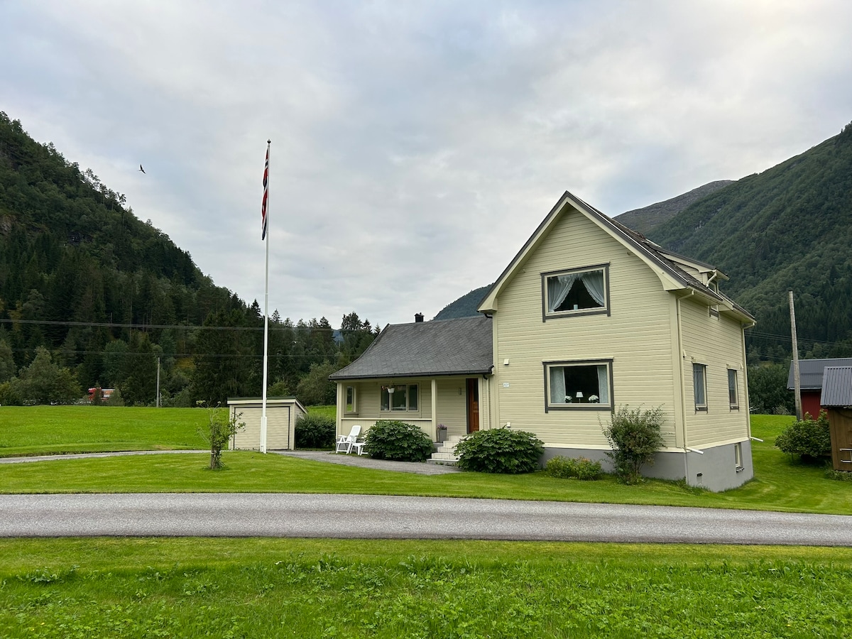 Nikmati liburan dari dunia di apartemen lantai dasar ini di rumah yang berusia hampir satu abad di pantai Norwegia Barat. Menatap fyord & pegunungan dengan tenang. Kembalilah setelah seharian bermain ski untuk bersantai di ruang tamu yang besar. Baca buku atau mainkan permainan. Nikmati hari - hari musim panas yang panjang dengan BBQ. Nikmati kenyamanan & ketenangan kamar tidur yang baru - baru ini diperbarui, sehingga Anda bangun dengan segar dan siap untuk petualangan Anda! Siapkan makan malam lezat di dapur lengkap. Saya akan dengan senang hati menyambut Anda!