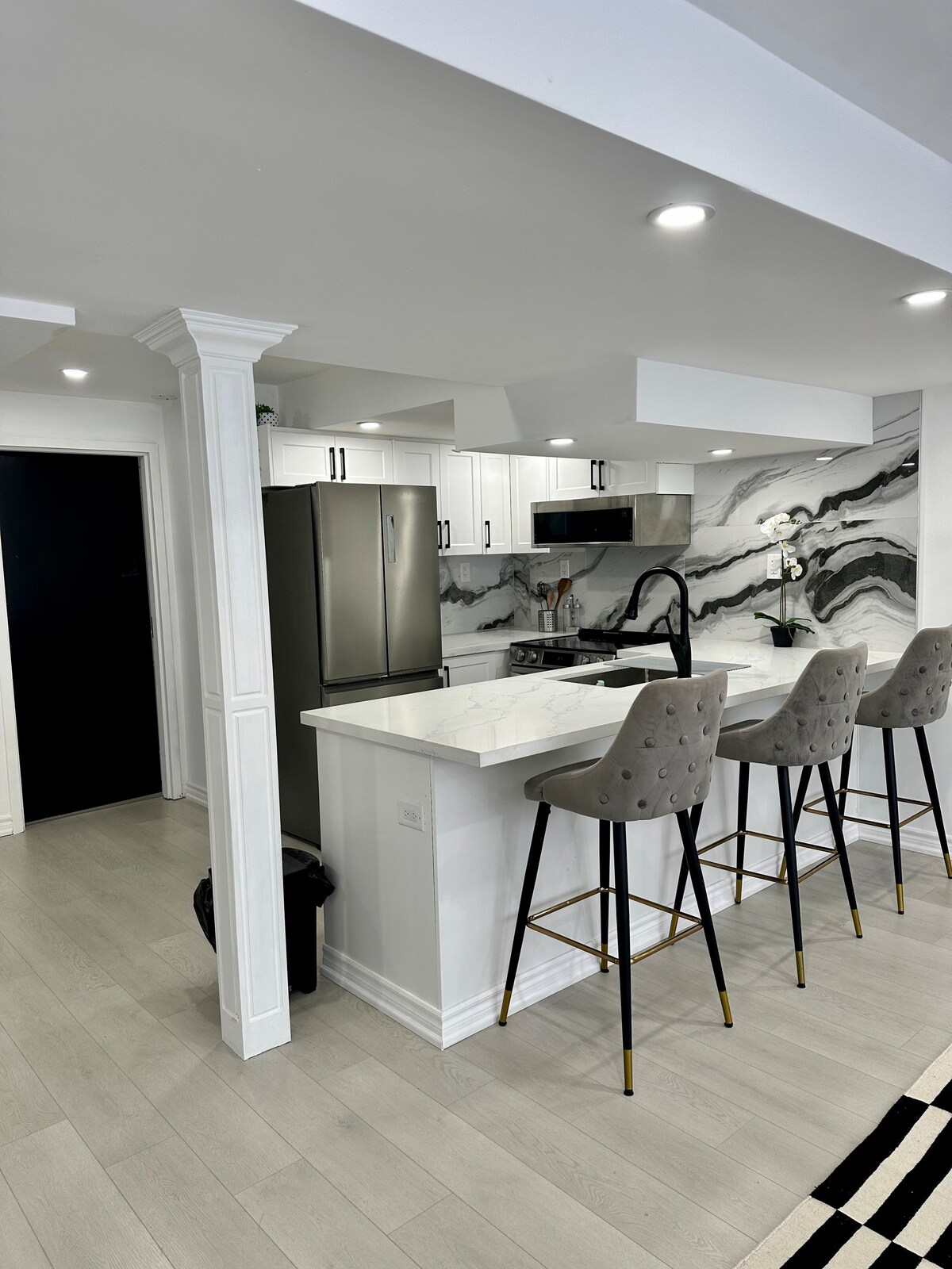 Nikmati masa inap yang bergaya dan damai di unit satu kamar tidur di lantai bawah yang berlokasi di pusat kota ini, cocok untuk pelawat wisata dan bisnis. Dengan pintu masuk pribadi, parkir, dan semua perlengkapan dasar, ini adalah rumah ideal Anda saat jauh dari rumah. Fitur termasuk dapur lengkap, kamar mandi, internet, smart TV, satu Queen dan satu tempat tidur sofa, dan ruang kerja fungsional. Beberapa langkah dari FreshCo, Walmart, restoran, dan layanan. Menit ke Vaughan Mills, Canada's Wonderland, Cortellucci Hospital dan transit.
