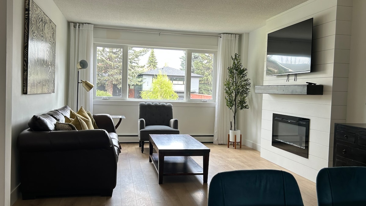 Selamat datang di Mount Rundle Hideaway! ★ "Dirancang dengan indah dan mereka memikirkan setiap detail ." Skor ☞ Berjalan 70 (Berjalan kaki ke kafe, tempat makan, pusat perbelanjaan, dll.) Akses ☞ resor dengan kolam renang berpemanas + bak mandi air panas ☞ Halaman dengan BBQ + meja piknik ☞ Dapur lengkap + stok ☞ Master suite dengan king + ensuite Perlengkapan ☞ hiking + semprotan beruang ☞ Perapian gas dalam ruang Ramah ☞ hewan peliharaan * 2 menit → DT Canmore 15 menit → Banff (butik, restoran, pemandangan)