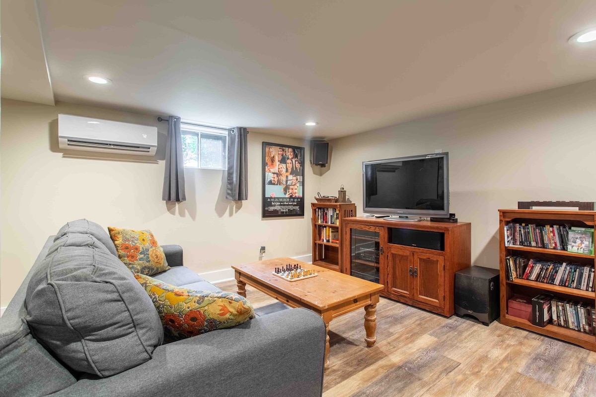 Suite tamu ruang bawah tanah yang luas di dekat bandara/dwntn