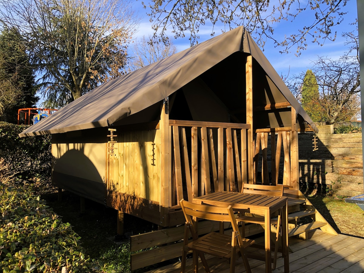 Luxury Lodge sur pilotis vue Pyrénées camping 4* (Pondok Mewah di atas tiang dengan pemandangan Pyrenees, perkemahan 4*)