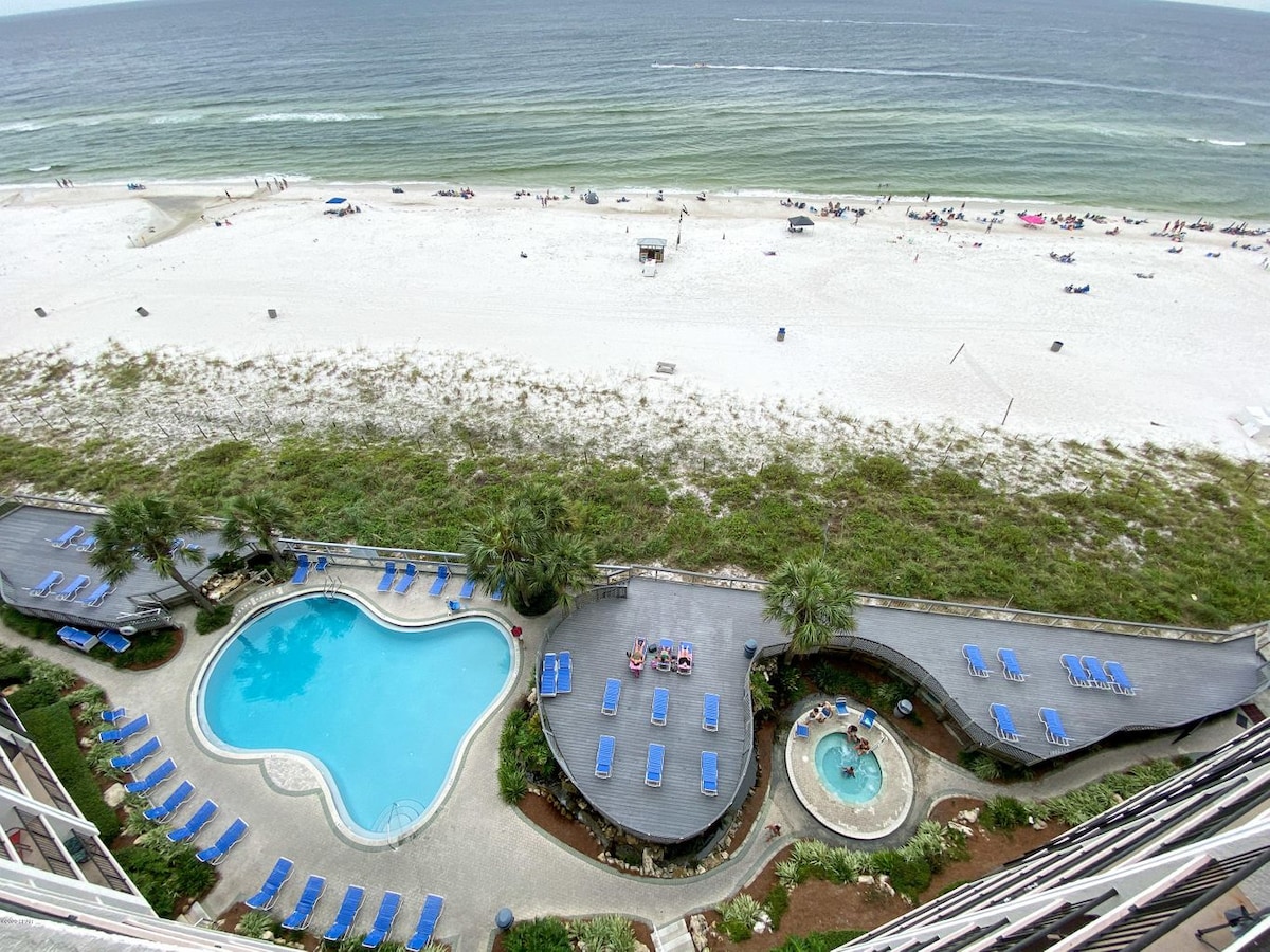 Kondominium pantai yang indah ini adalah unit sudut yang sangat dicari, menawarkan jendela dari lantai ke langit - langit di ruang tamu utama, ruang makan, dan dapur utama, dan kedua suite kamar tidur utama, memberi Anda pemandangan Teluk Meksiko yang menakjubkan dari hampir setiap kamar. Air panas adalah Gated Resort, menawarkan 110 hektar golf, tenis, shuffleboard, spa, pusat kebugaran, ruang aerobik, 11 kolam renang termasuk Lagoon Pool bergaya Polinesia kami. Ada juga Kids AdventureClub.
