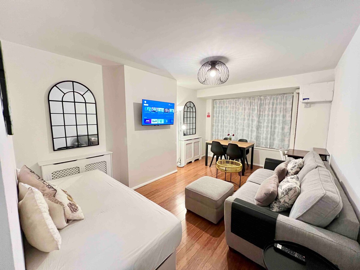 ★★★ TEMUKAN KEGEMBIRAAN DAN KENYAMANAN TANPA BATAS DI APARTEMEN STUDIO MODERN YANG BERSIH BERKILAU INI ★★★ Tempat yang damai ini dilengkapi dengan segala kebutuhan Anda. Tempat peristirahatan Anda yang tenang menanti di London Zone 3, jauh dari jalan-jalan ramai, dengan keseimbangan privasi dan perasaan seperti di rumah. ✔ Check-in mandiri yang mudah dan fleksibel melalui keypad aman ✔ Tirai Blackout Parkir ✔ Gratis. ✔ SmartTV: Youtube Premium dan Netflix ✔ Dapur & Kamar Mandi lengkap ✔ Masa Inap Tenang ✔ Wi - Fi gratis ✔ Jaminan Kebersihan