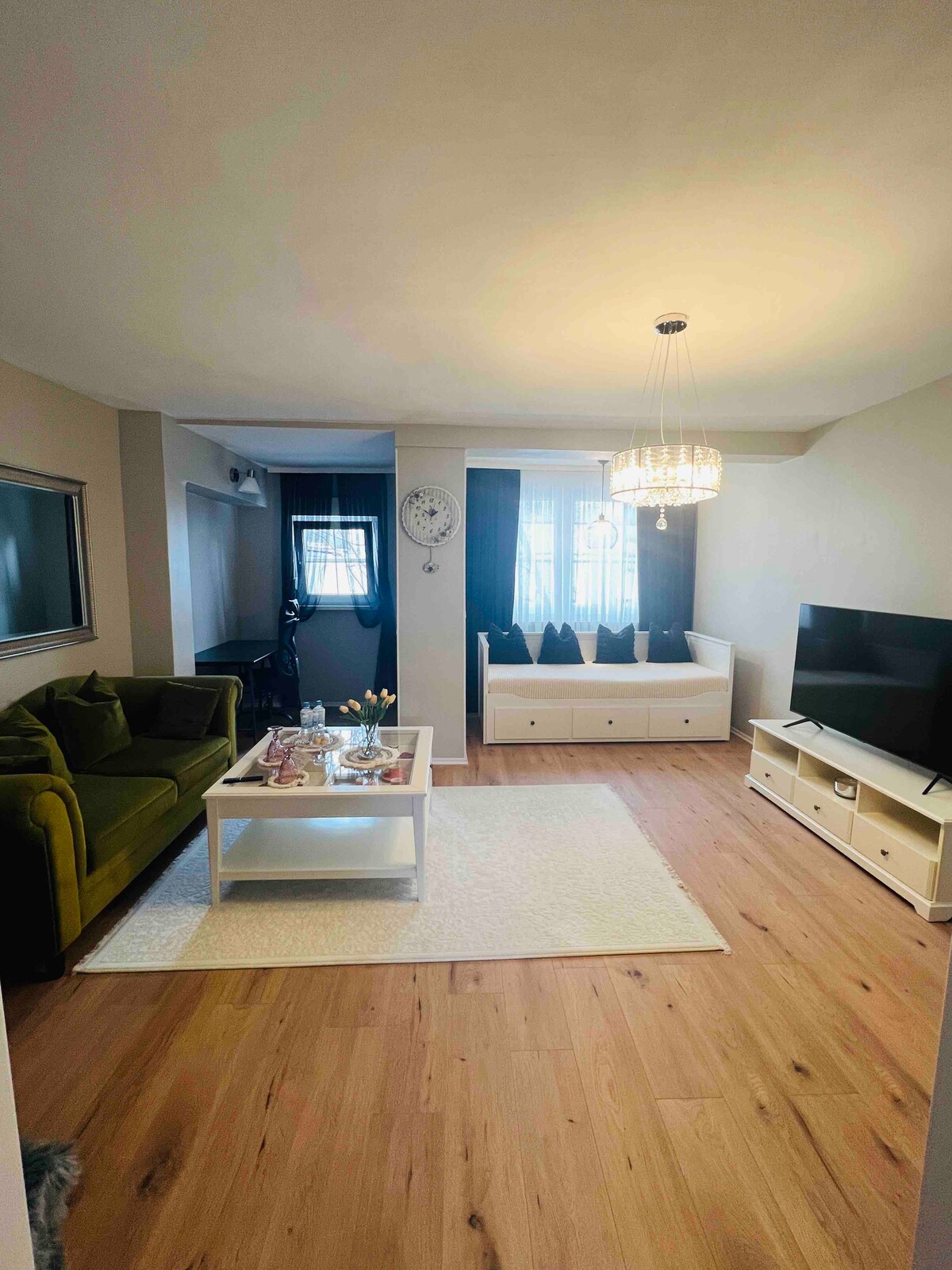 Die Mindestanzahl der Gäste beträgt 2. Lehne dich zurück und entspanne dich in unserer ruhigen 65qm Wohnung mit Fußbodenheizung & einem privaten Eingang. Verkehrsmittel wie Bus, Bahn , S-Bahn sind zu Fuß erreichbar. Zur Verfügung: Schlafzimmer mit einem Doppelbett 1,80m/2m. Schlafgelegenheiten für 5 weitere Personen verfügbar. Ein großes Wohnzimmer mit einme Smart Tv &Schreibtisch. Ausgestattete Küche mit Kühlschrank, Mikrowelle, Kaffeemaschine, Wasserkocher und Herd. ruhige Wohngegend