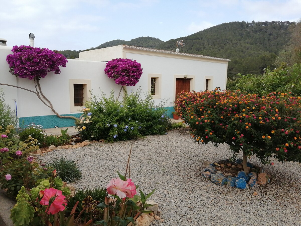 Rumah bergaya Ibizan 80m2 yang bagus. Memiliki 2 kamar tidur double, satu kamar mandi, ruang tamu, dapur lengkap dengan kompor, microwave, parkir, garasi, bbq, mesin cuci, seprai, handuk, handuk pantai, Smart tv, musik Cd, Wifi serat optik, dll. 10000m2 lahan oranye, dan buah dan sayuran organik musiman. Perhatian langsung kepada pemiliknya, sambutan hangat, dan tips hebat. Pengalaman unik di Ibiza. Lisensi turis ETV -1080 - E