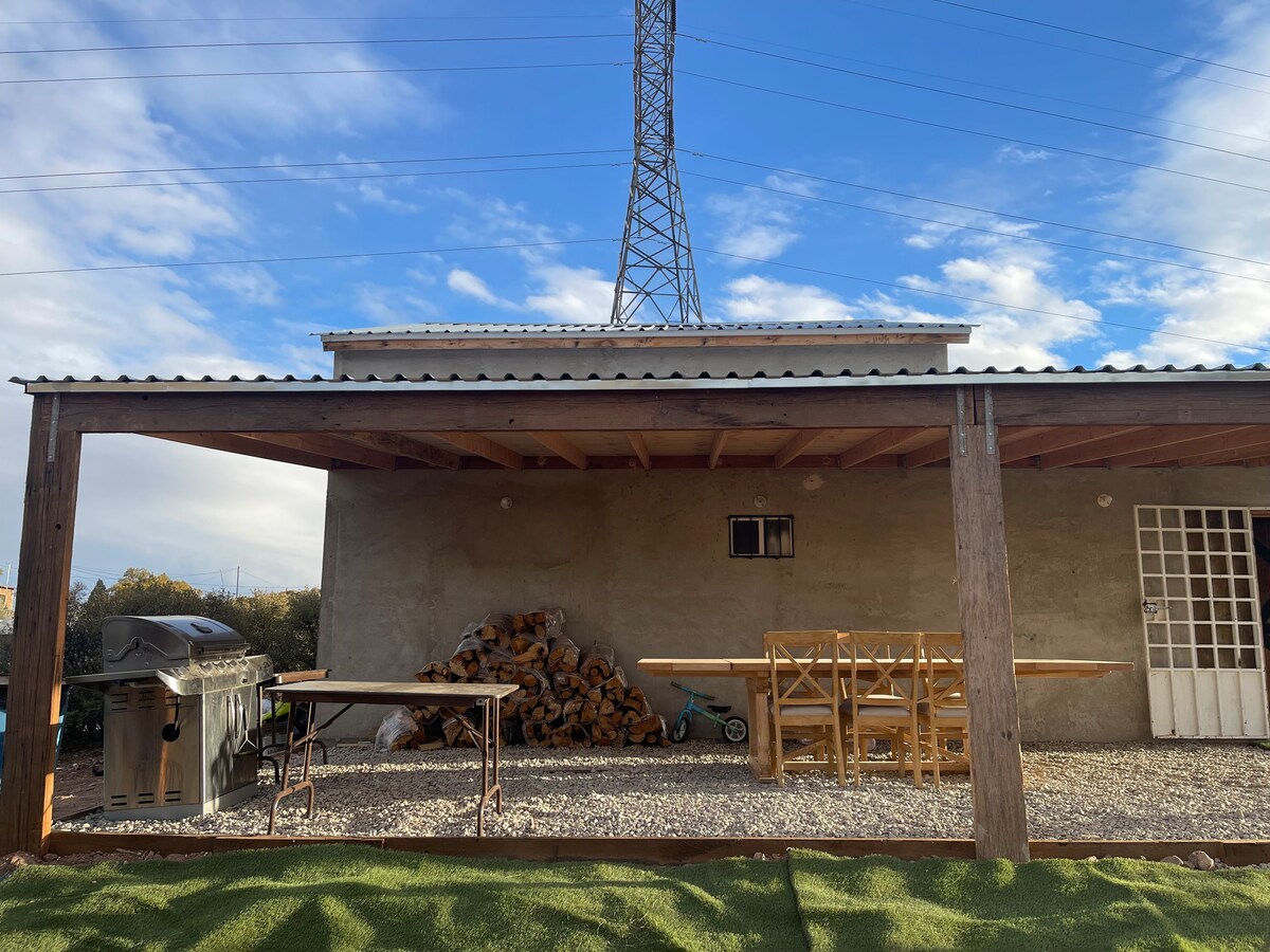 Forget your worries in this spacious and serene space. Just 10 min away from wineries such as Bruma, Domecq and Anatolia this cute 1 bedroom cabaña is the perfect getaway close enough to everything but tucked away in a quiet area surrounded by nature. The space: Kitchen equipped with fridge, stove, microwave and essentials for cooking. One very spacious bedroom with a king size bed with ensuite bathroom. Outdoor terrace with a beautiful view of the mountains, w/grill and outdoor dinning area.
