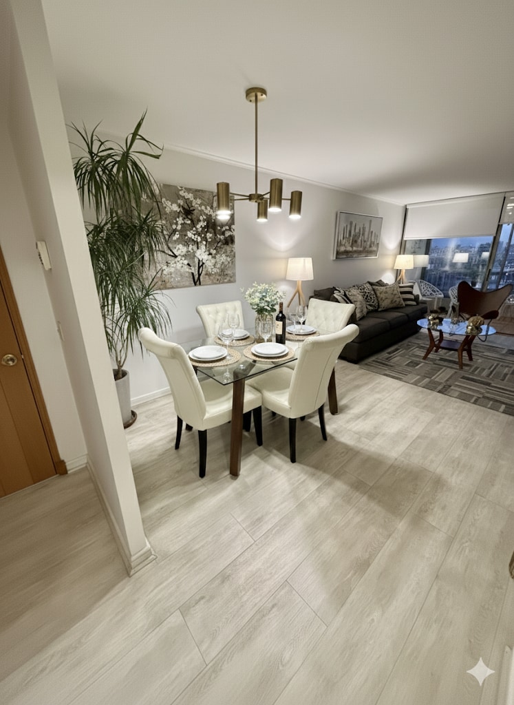 Apartemen modern dengan pemandangan spektakuler dari pegunungan, beberapa langkah dari Mall Parque Arauco. Kolam renang yang dipanaskan, pusat kebugaran, keamanan 24 jam, dan tempat parkir. Dua kamar tidur, tempat tidur king + 2 tempat tidur single, tempat tidur sofa double di ruang tamu, 2 kamar mandi, teras tertutup dengan pelindung jendela, ideal untuk keluarga. Mesin cuci/pengering, mesin cuci piring, Wi-Fi berkecepatan tinggi, dan meja kerja. Dilengkapi penuh untuk masa inap yang nyaman, aman, dan fungsional.