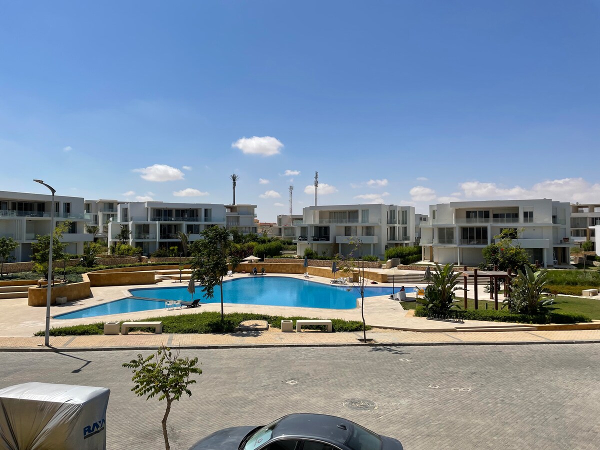 Bersantai di apartemen 2 kamar tidur yang nyaman di Porto Golf Resort, dekat dengan Crystal Lagoon dan dengan akses pantai yang mudah. Ideal untuk keluarga, pasangan, atau teman yang mencari liburan pantai yang damai di New Alamein. ⭐ Disukai oleh tamu karena kebersihan, kenyamanan, dan lokasi yang luar biasa. Apartemen ini mencakup AC, Wi-Fi cepat, dapur lengkap, dan tempat tidur yang nyaman, dengan akses ke laguna, kolam renang di dekatnya, dan fasilitas resor—sangat cocok untuk masa inap singkat atau lebih lama.