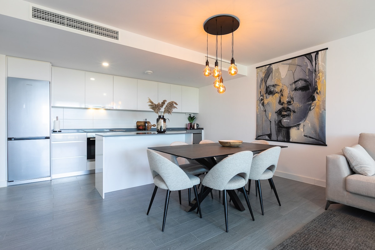 Selamat datang di liburan pantai Anda di Aria by the Beach, resor bergengsi yang menawarkan perpaduan sempurna antara kemewahan, gaya, dan ketenangan di Costa del Sol. Apartemen frontline yang menakjubkan ini menjanjikan masa inap yang tak terlupakan, dengan setiap detail yang dirancang untuk kenyamanan dan relaksasi. Di dalamnya, ruang tamu terbuka modern menampilkan perabot elegan, ruang makan untuk enam orang, dan pemandangan luas ke arah Mediterania.