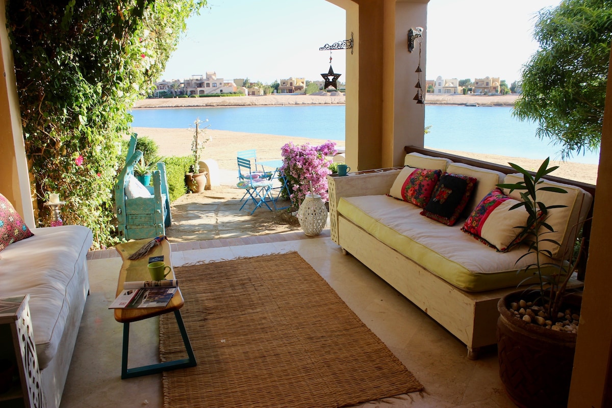 Nikmati berada di pusat kota El Gouna dan menginap langsung di laguna laut terbuka di rumah tepi pantai saya yang menawan. Baik Anda menghabiskan pagi hari di teras atau pantai, Anda dapat bersantai dalam privasi dan ketenangan - lupa bahwa Anda berjarak 5 menit berjalan kaki dari toko dan restoran di pusat kota. Pesan rumah tepi pantai yang unik ini untuk menikmati langkah berenang dari pintu Anda dan masih berjarak 5 menit berjalan kaki dari pusat kota yang ramai untuk makan malam.