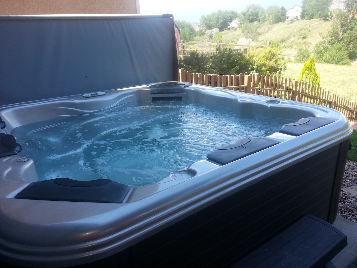 Rumah baru seluas 1000 kaki persegi di tepi Colo Springs. Dapur Lengkap TV-QLED 55" TV (Rolls to LR, BDRM & spa) Internet serat 100M Spa Pribadi: Tempat peristirahatan pasangan yang sempurna Pancuran udara terbuka Bak mandi air panas unik untuk 2 orang. 1. Isi ke suhu berapa pun (maksimal 110F) 2. suhu +/- saat berjalan 3. Mandi 4. Saluran Pembuangan - Tanpa Bahan Kimia Berbagi 10 ekar yang tenang dengan 1. Airbnb 2 orang ke-2 2. Rumah Utama - (Judy & I) Bangunan terpisah - Lodge bersifat pribadi Jalur (di properti & jalur negara bagian di dekatnya)