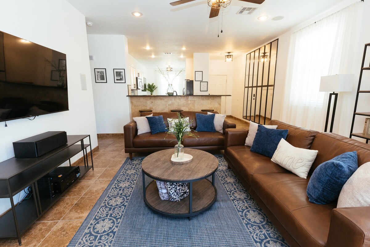 Nikmati budaya Meksiko - Amerika yang semarak dan keramahtamahannya yang hangat di rumah konsep terbuka yang diperbarui ini. Baik Anda berada di kota untuk bekerja, bersantai, atau bermain, rumah 3 BR/2 BA yang luas ini dengan ruang permainan, 500+Mbps, AC berpendingin, king suite & dapur gourmet memiliki semuanya. Bersantai di dekat meja api atau pergola tempat tidur gantung di tempat peristirahatan halaman belakang yang BARU dengan lapangan basket & pickleball! Dekat dengan I -10, bandara, UTEP/UMC/pusat kota/FtBliss/HuecoTanks/tempat makan/taman/toko. Kami menantikan kedatanganmu. ¡Bienvenidos!